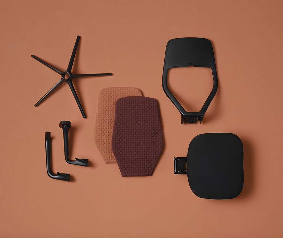 - ACX Mesh, con rivestimento a rete in maglia di poliestere riciclato semitrasparente, per garantire ottime performance in termini di sostegno ergonomico e circolazione dell’aria;