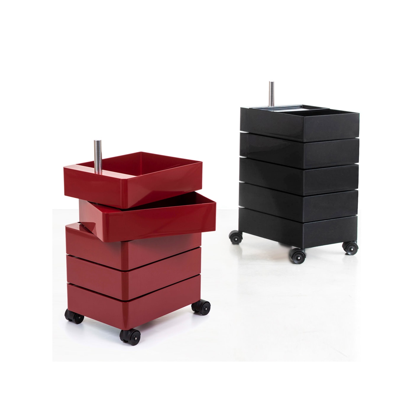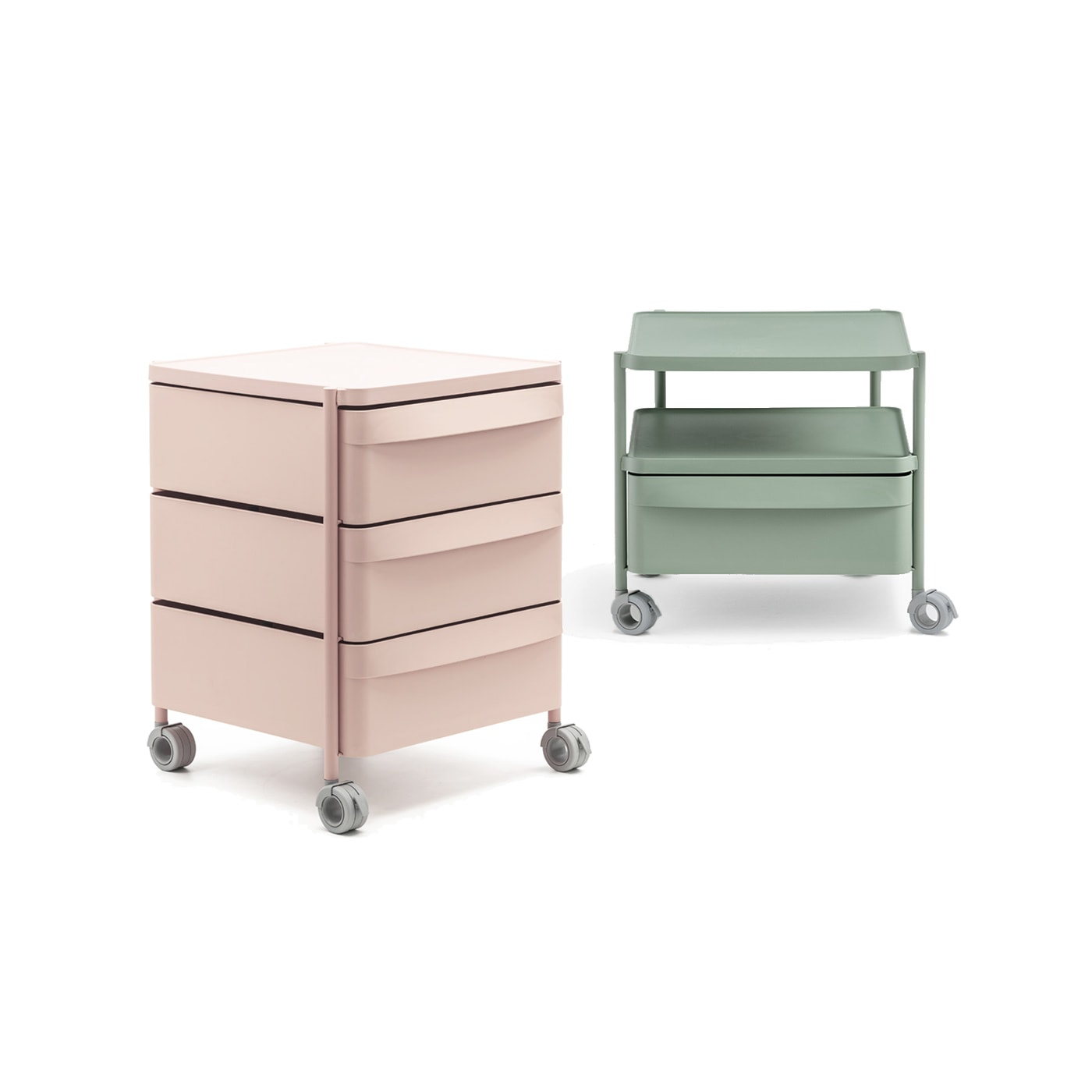 Per completare la postazione base, puoi scegliere tra cassettiere fisse come la cassettiera in metallo Della Chiara e LessLess di UniFor, e le cassettiere su ruote girevoli come 360° di Magis o Boxie di Pedrali.