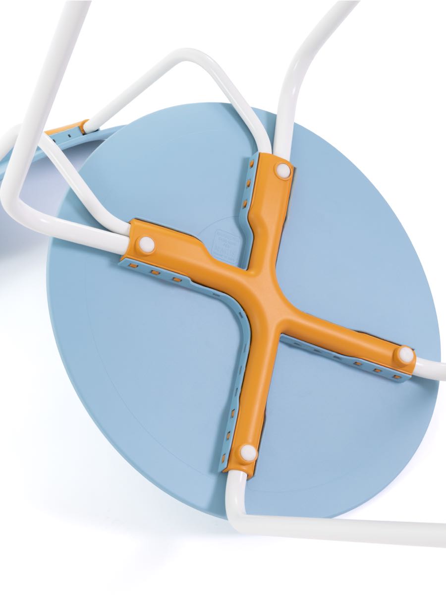 Un’altra novità è il colore delle nervature di giunzione, realizzate in arancio brillante. Un tocco inaspettato di colore che mette in evidenza una delle grandi innovazioni della celebre sedia di Enzo Mari.