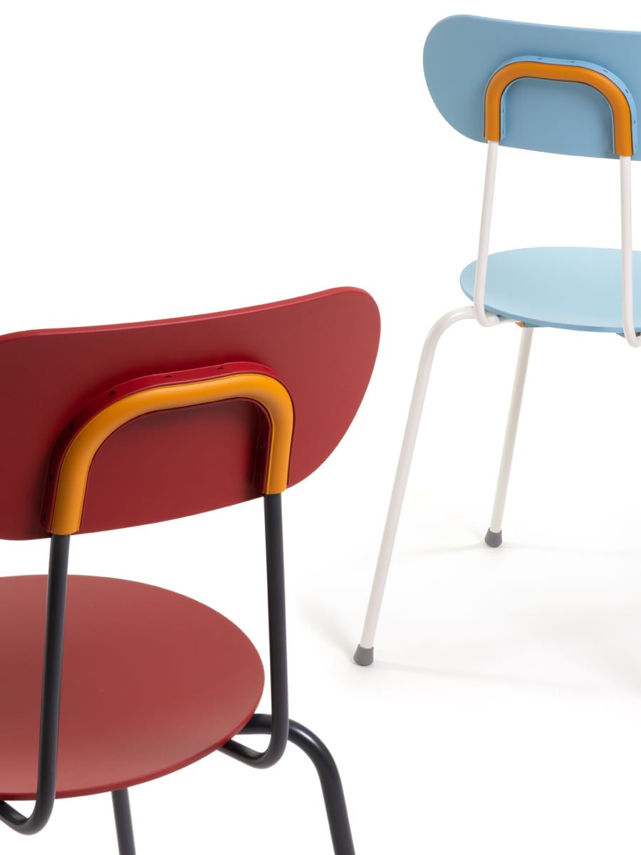 La nuova edizione celebrativa realizzata da Magis introduce nuovi colori e dettagli vivaci. La classica struttura in acciaio cromato lascia il posto all’acciaio verniciato, disponibile in bianco o in nero. Il sedile e lo schienale in polipropilene stampato a iniezione sono proposti in due nuove tonalità: un delicato azzurro cielo e un rosso bordeaux dall’aria vintage.