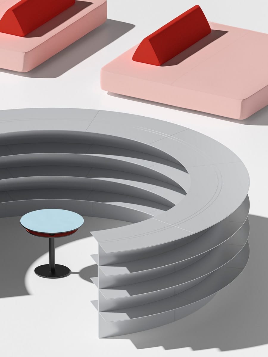 - SOFT FURNITURE: gli elementi di arredo morbidi come le isole quadrate, rotonde e le iconiche ciambelle sono dedicati agli spazi per l’interazione e l’incontro.