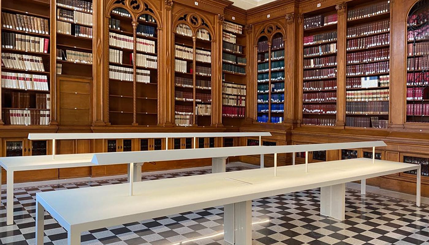 Selezione e fornitura di tavoli funzionali UniFor Naòs System per la sala lettura dell’aula Cannizzaro, locali storici dell’università di Messina.
