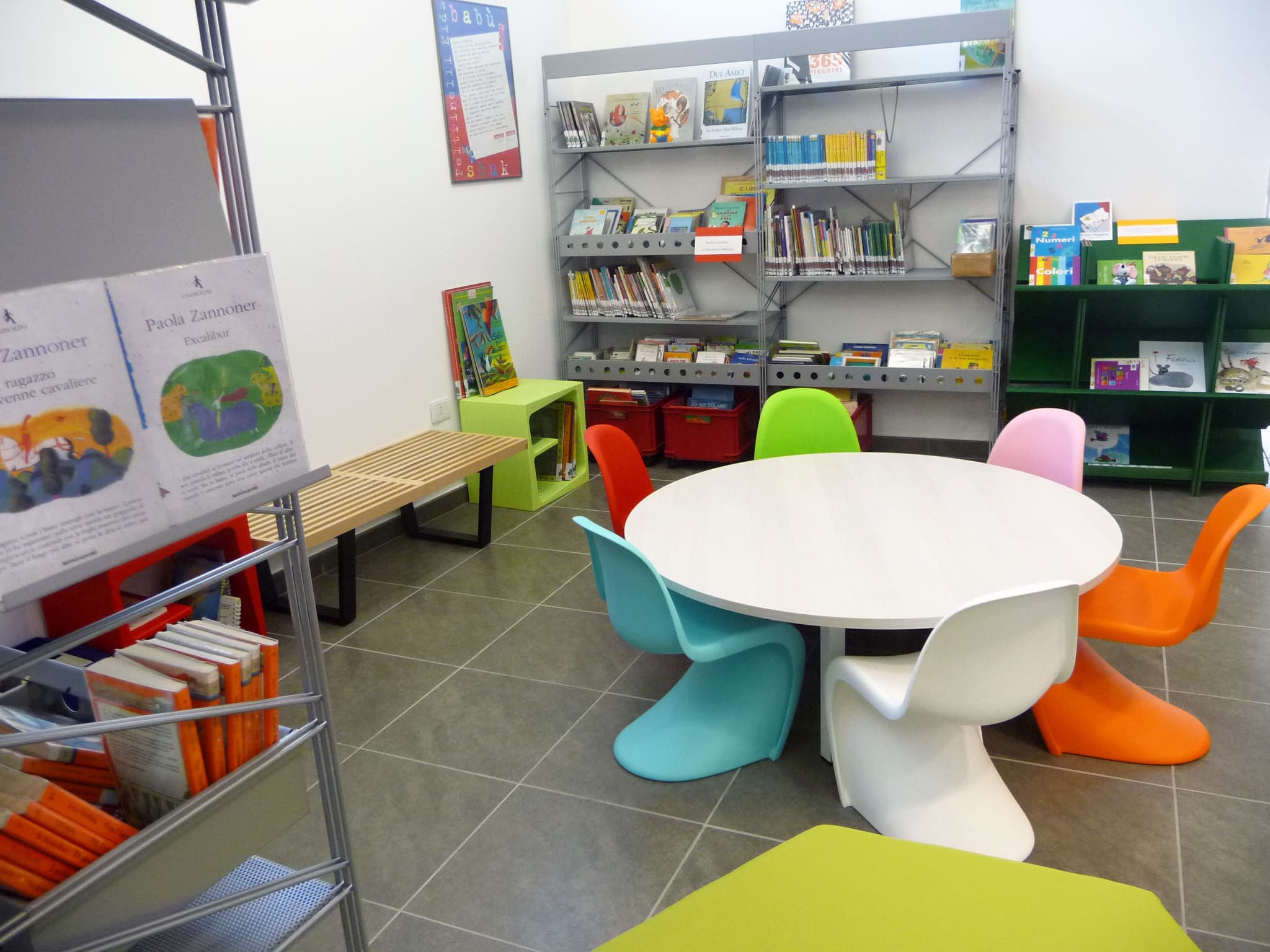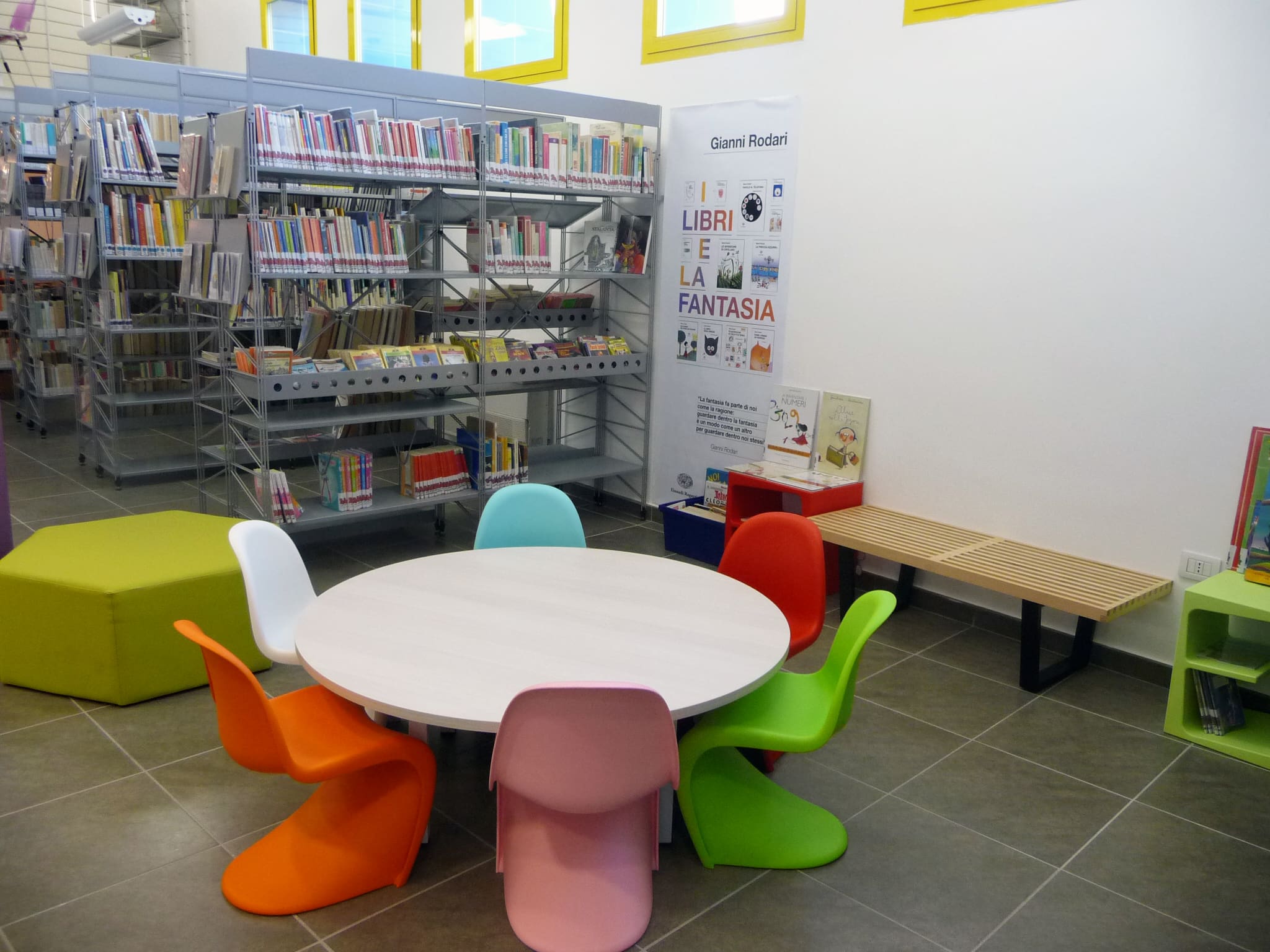 Iniziamo a progettarePer la Biblioteca abbiamo allestito gli spazi dedicati alla lettura, la mediateca, la reception e l’area kids. Per quest’ultima area abbiamo proposto arredi a “misura bimbi”, andando a sviluppare anche pezzi personalizzati e realizzati appositamente.