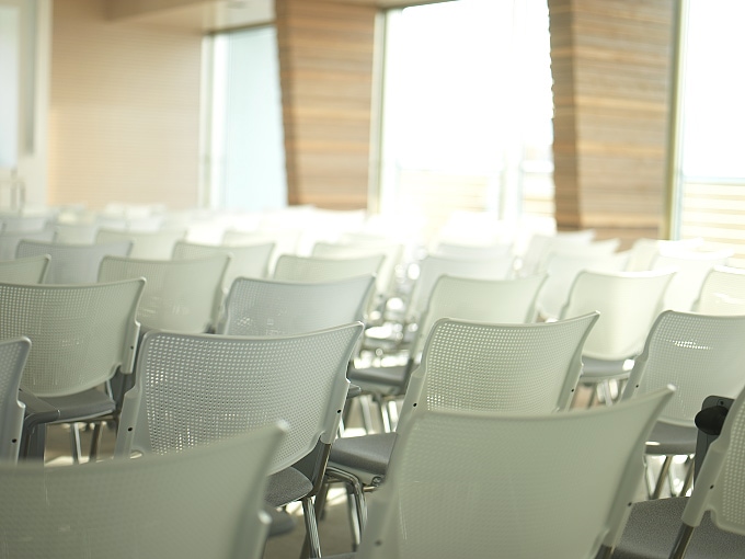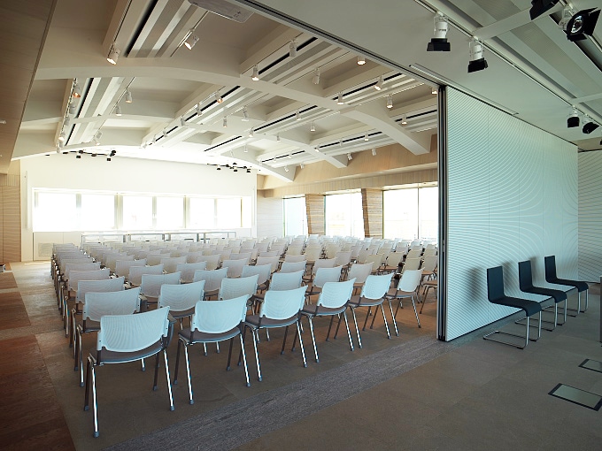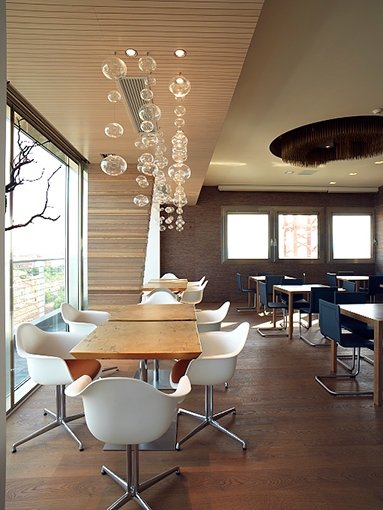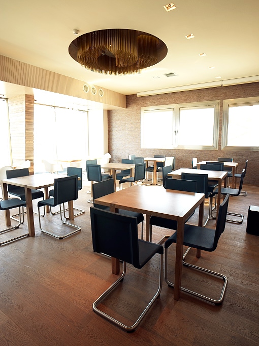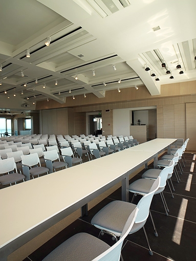 Iniziamo a progettarePer il centro congressi, in collaborazione con l’Arch. Ubaldi, abbiamo allestito l’area conferenza con sedute La Mia con tavoletta ribaltabile e la sala ristorante con sedute Vitra.