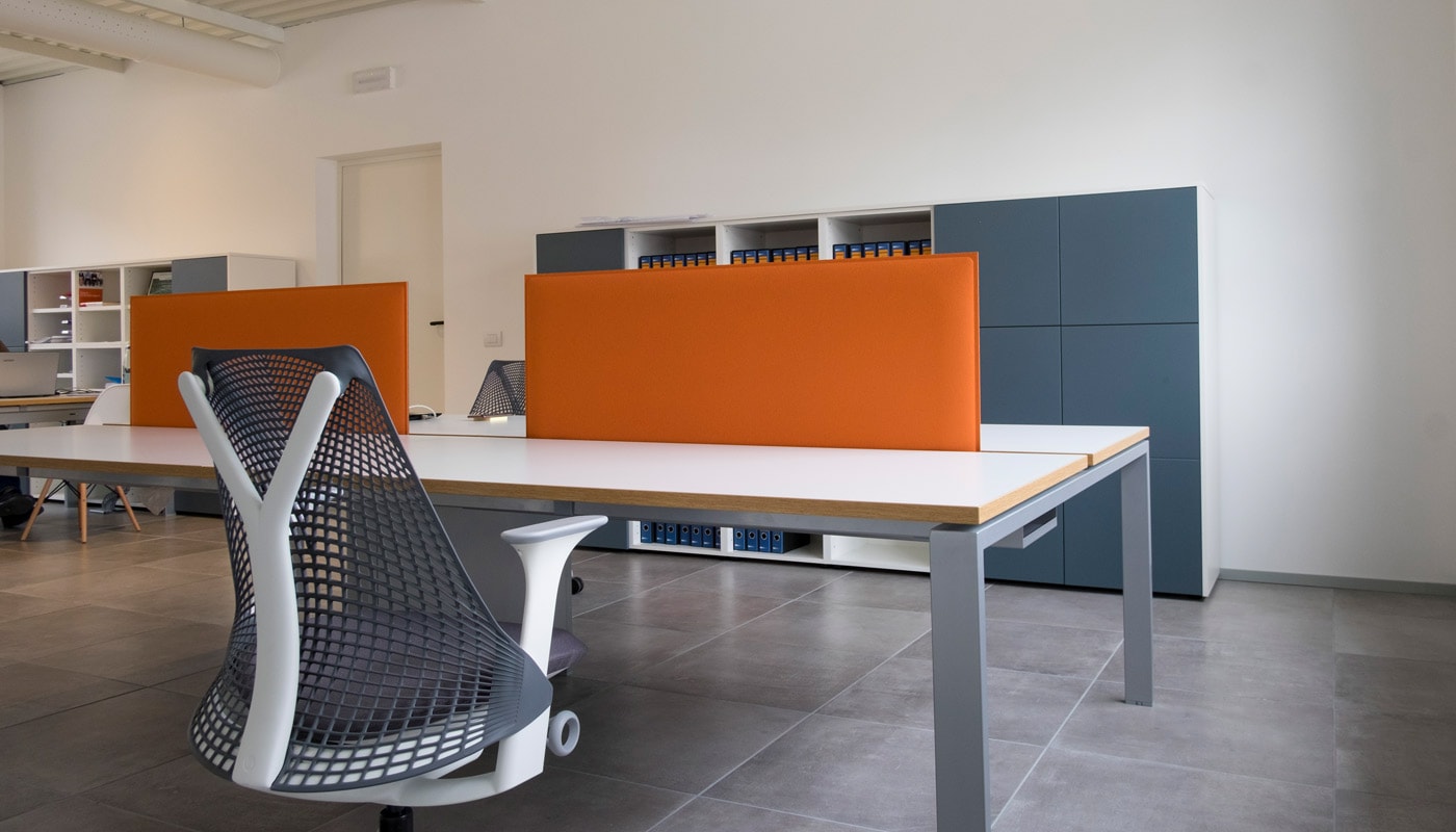 Iniziamo a progettareSu progetto dell’Arch. Luca Vagnini abbiamo arredato gli uffici della sede di Pesaro, occupandoci di allestire le postazioni operative e del comfort acustico. Giocando con gli arredi siamo riusciti a delimitare gli spazi consentendo di creare ambienti che favoriscono la condivisione e il lavoro di team.