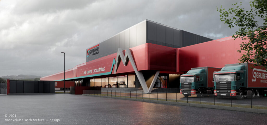 Gli spazi di GRUBER Logistics sono organizzati intorno a un blocco uffici centrale su tre livelli, che funge da “perno distributivo e di controllo” per l’intero edificio.