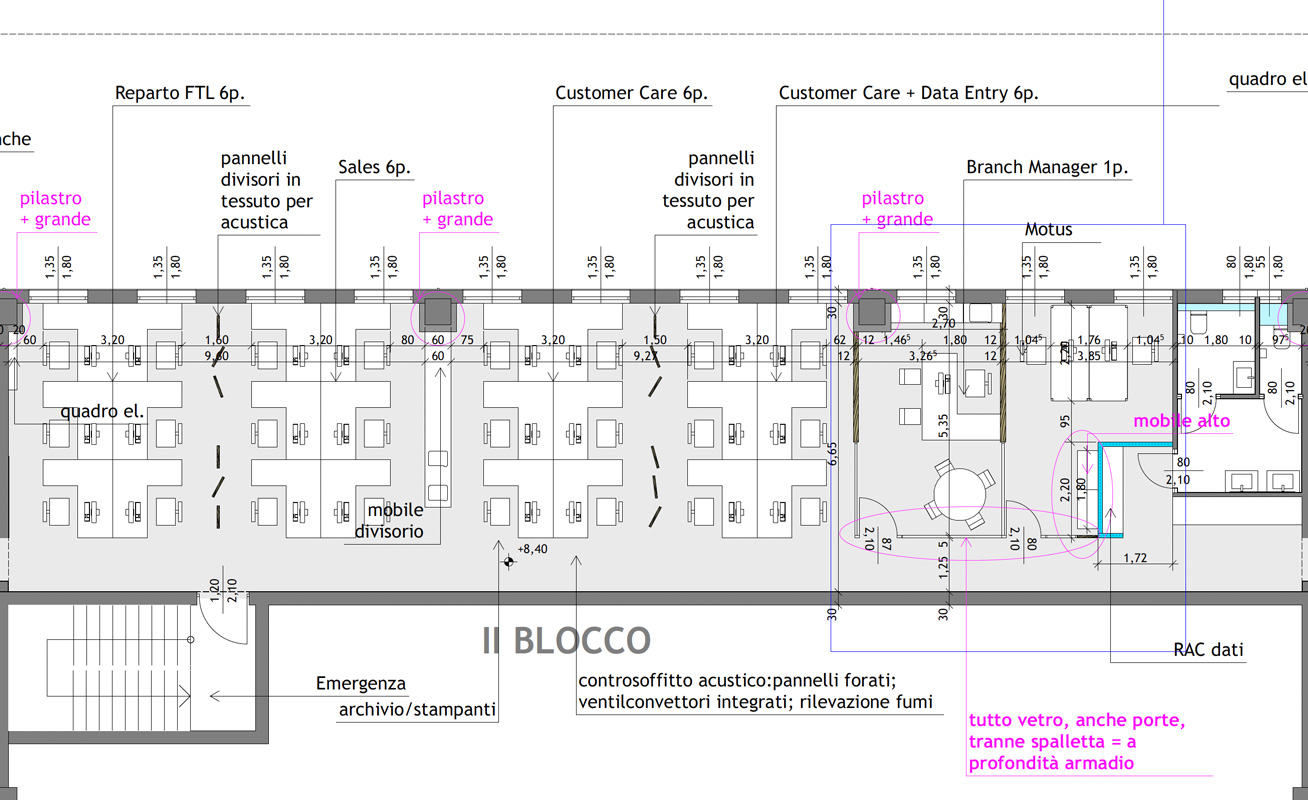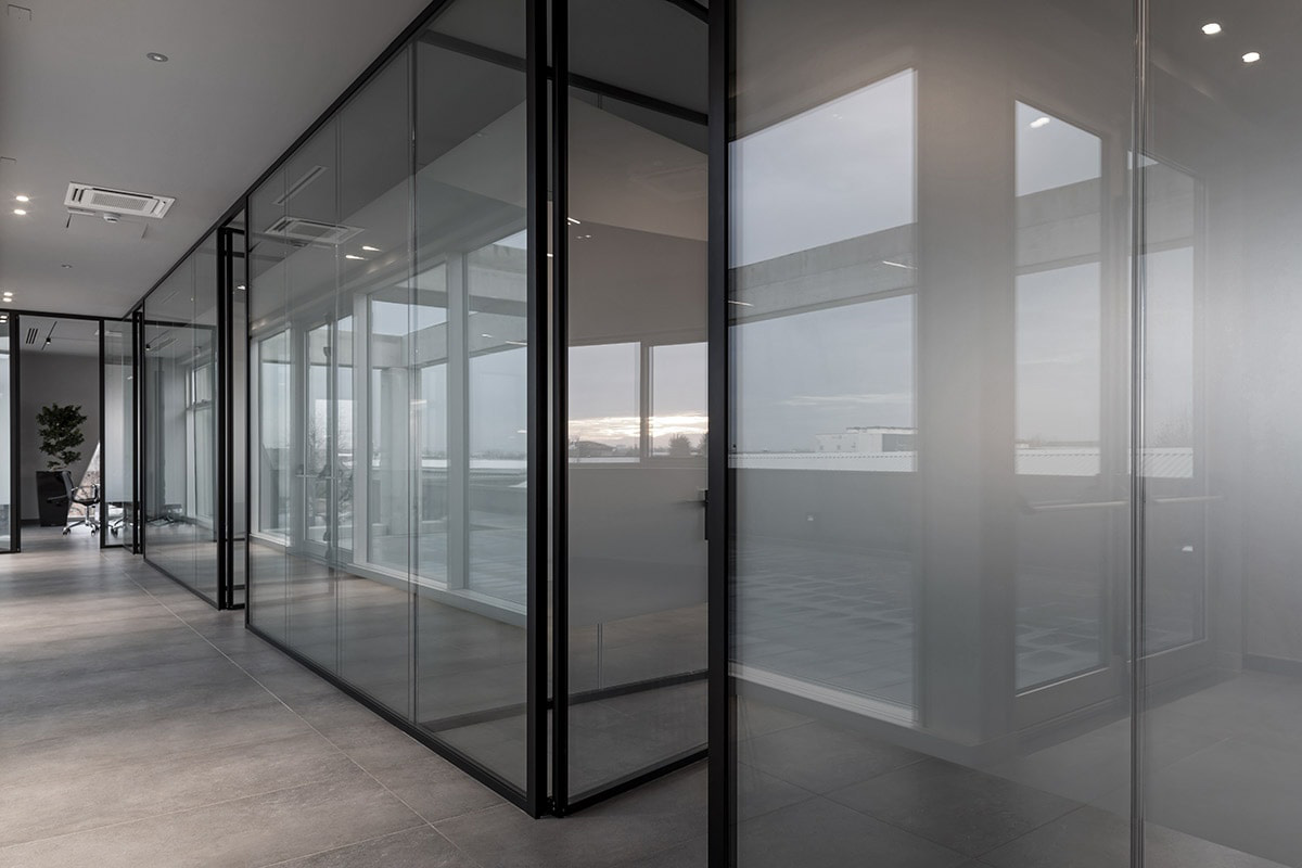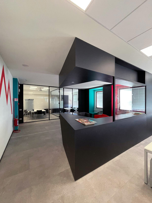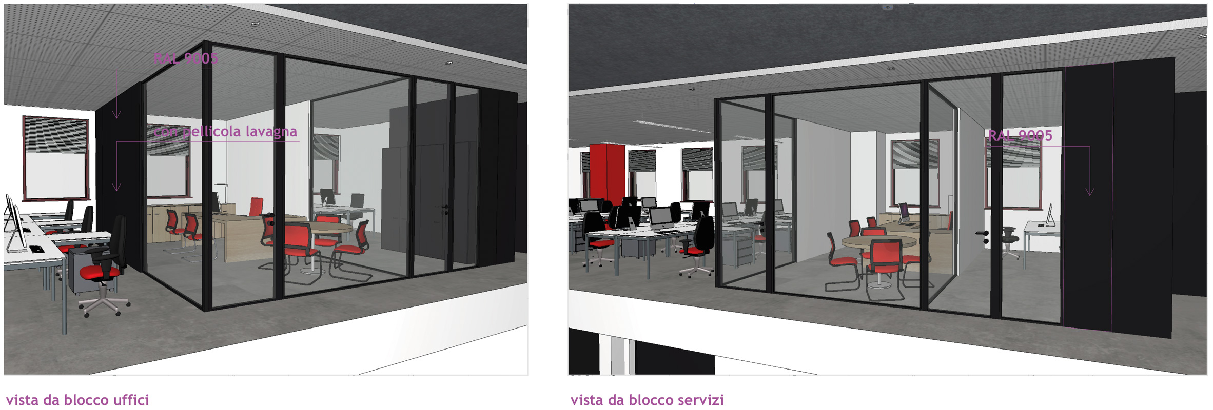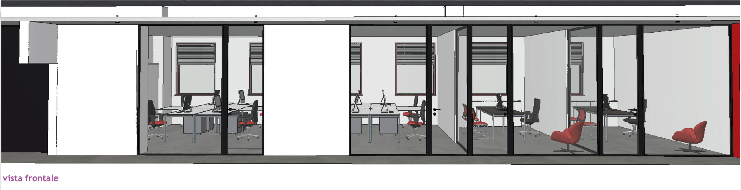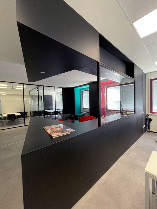 Realizzazione su misura di partizioni vetrate e attrezzate divisorie, arredi direzionali e operativi, zone comuni e reception su disegno cliente e ingegnerizzazione, realizzazione e montaggio Della Chiara.
