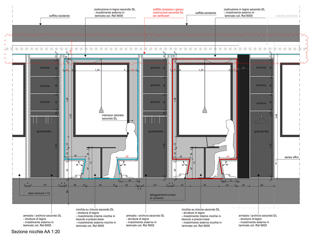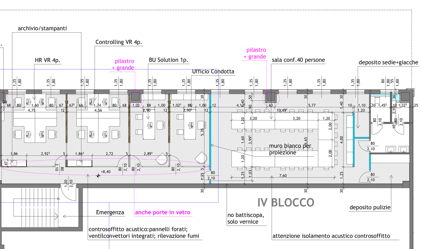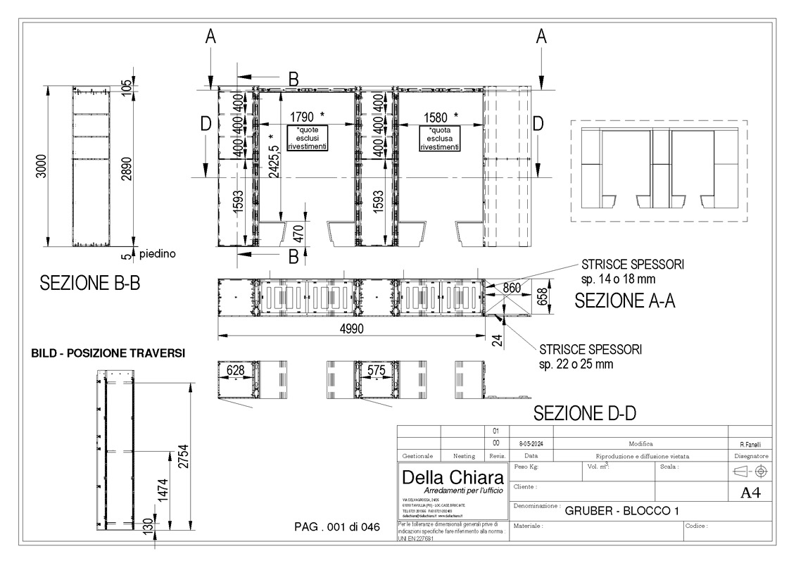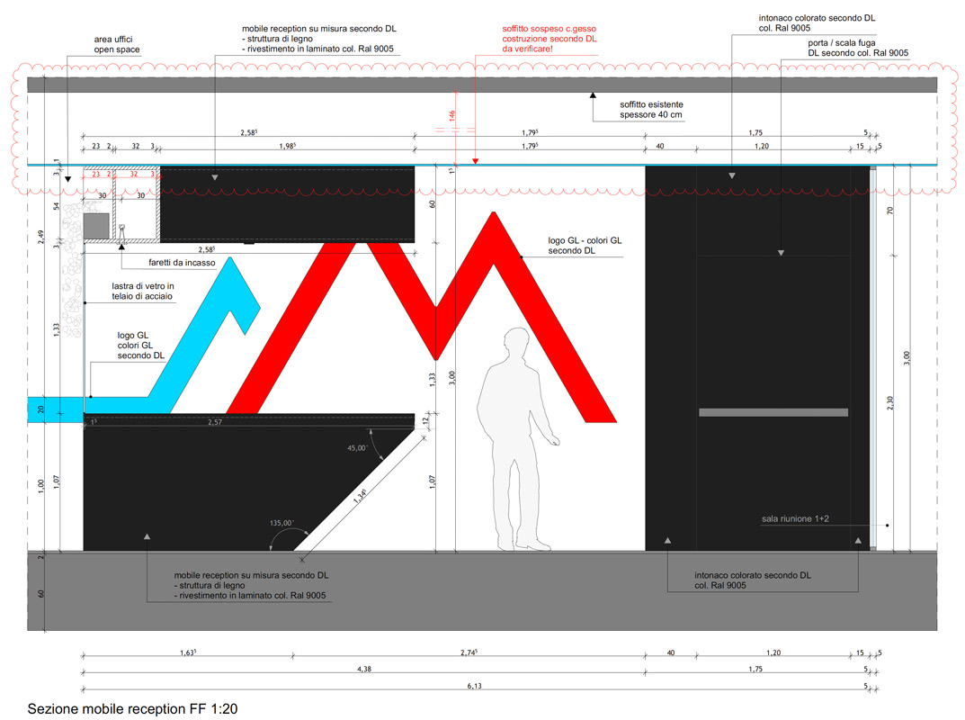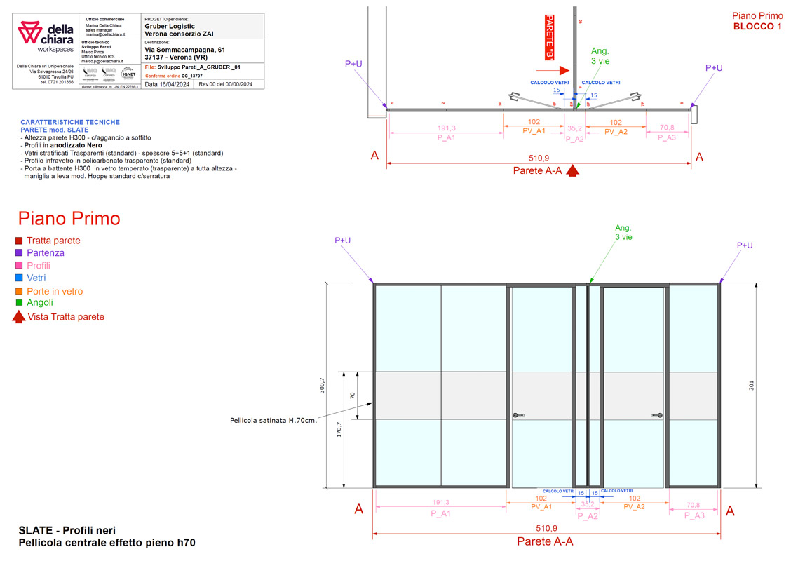 Realizzazione su misura di partizioni vetrate e attrezzate divisorie, arredi direzionali e operativi, zone comuni e reception su disegno cliente e ingegnerizzazione, realizzazione e montaggio Della Chiara.