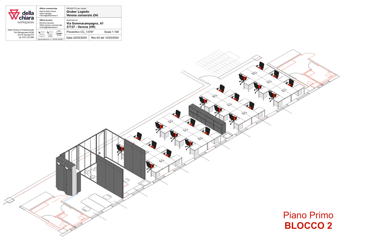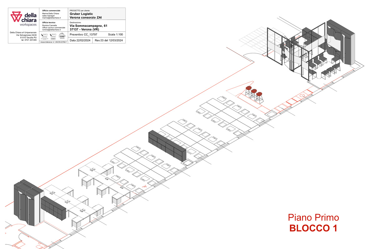 Per il progetto di ampliamento della sede di GRUBER Logistics S.p.A. a Verona, ci siamo occupati della realizzazione e del montaggio di arredi su misura, seguendo le indicazioni dello studio “monovolume architecture + design”.