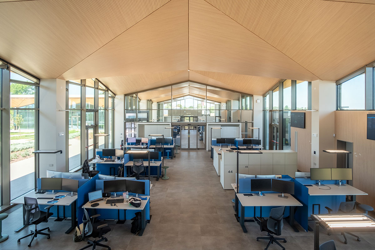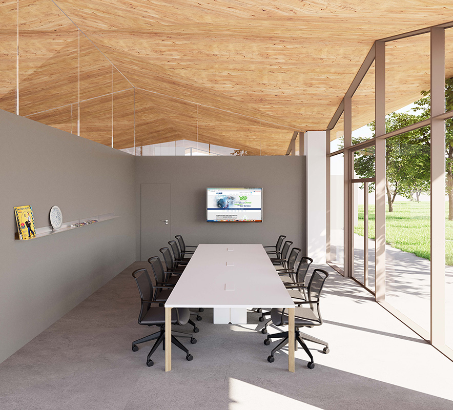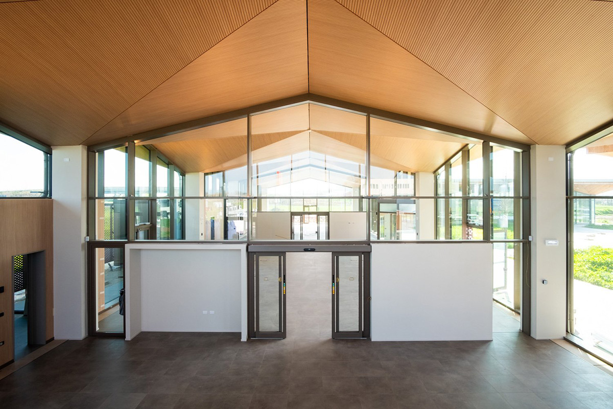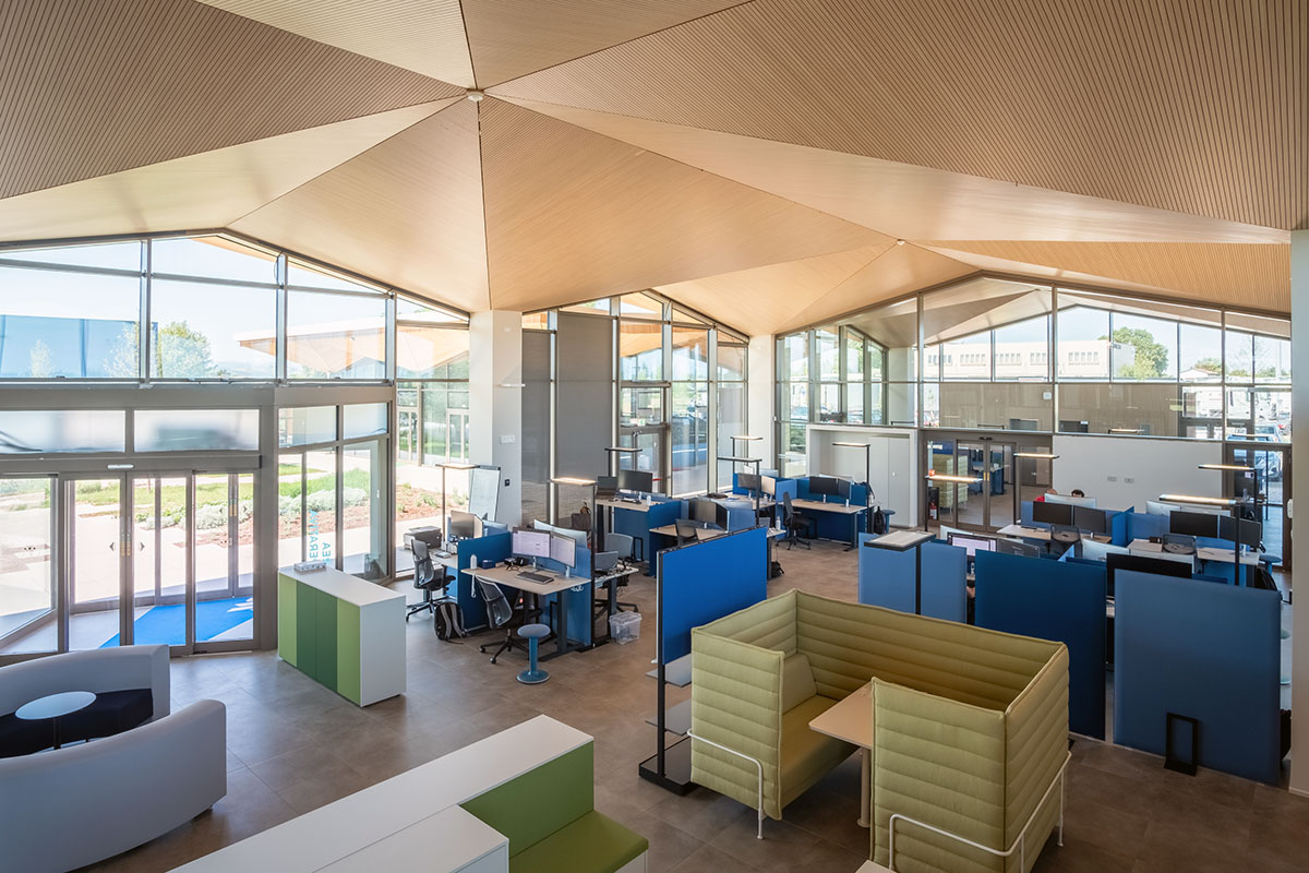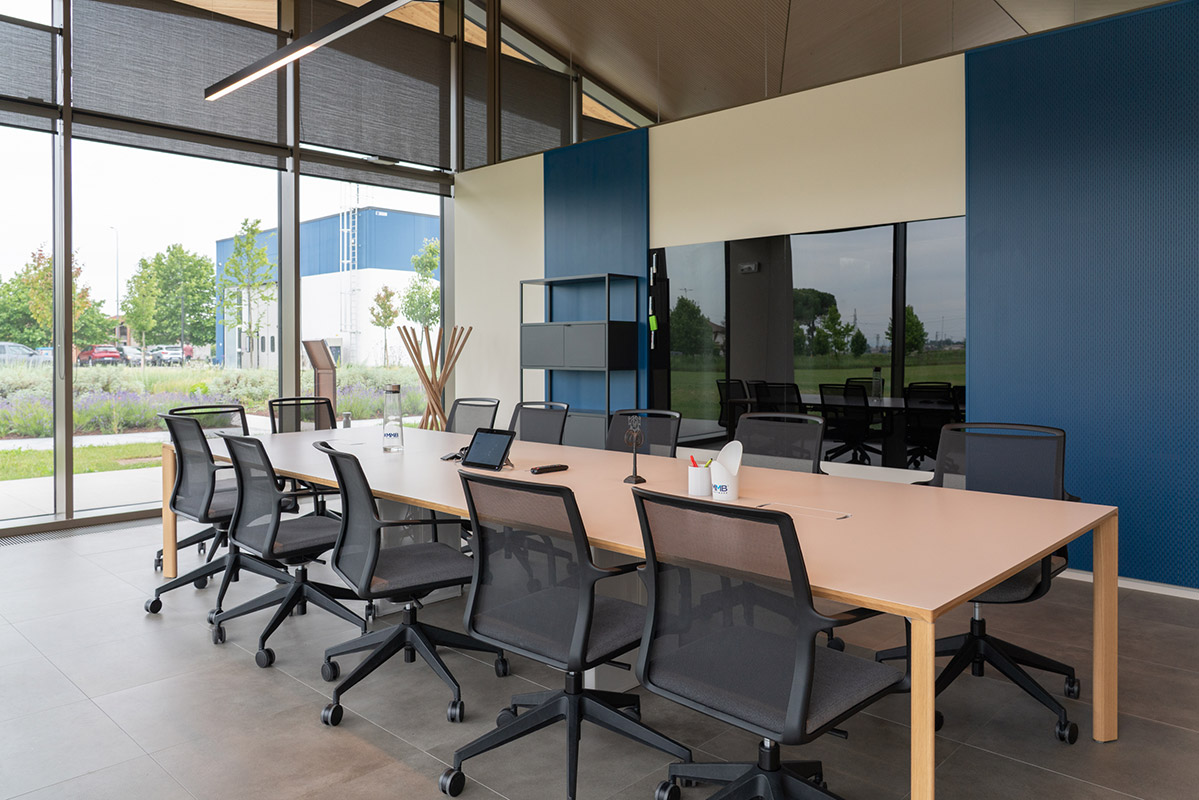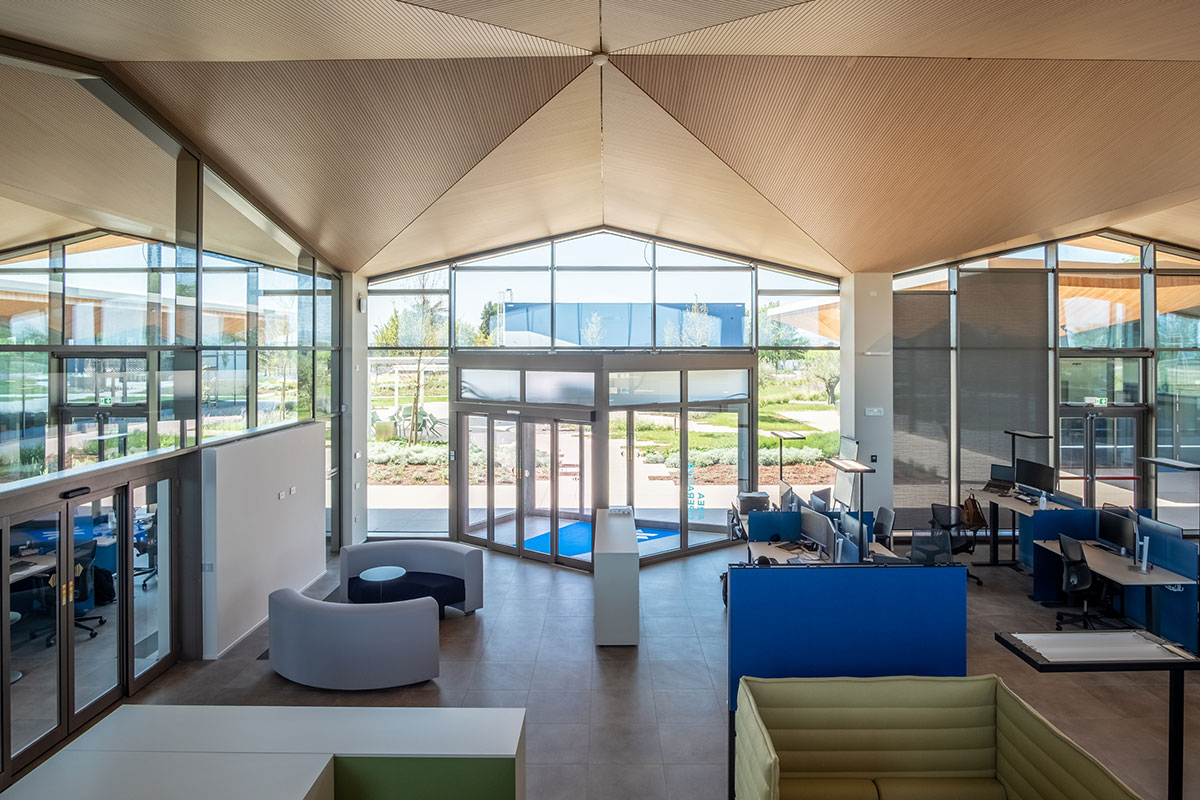 La progettazione ha privilegiato materiali ecocompatibili, puntando su soluzioni sostenibili e ad alta efficienza energetica, per garantire un impatto ambientale ridotto e un ambiente di lavoro accogliente e moderno.
