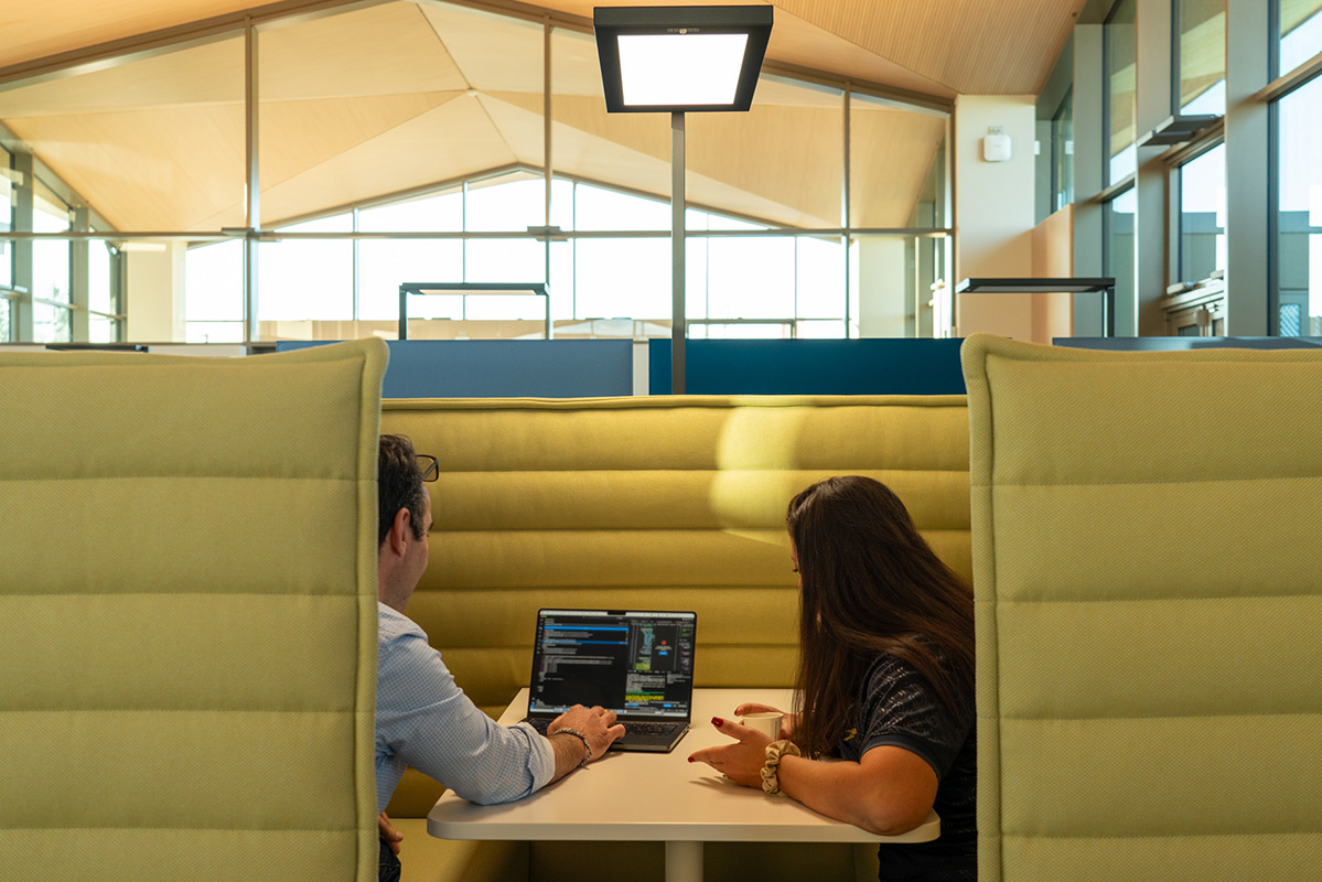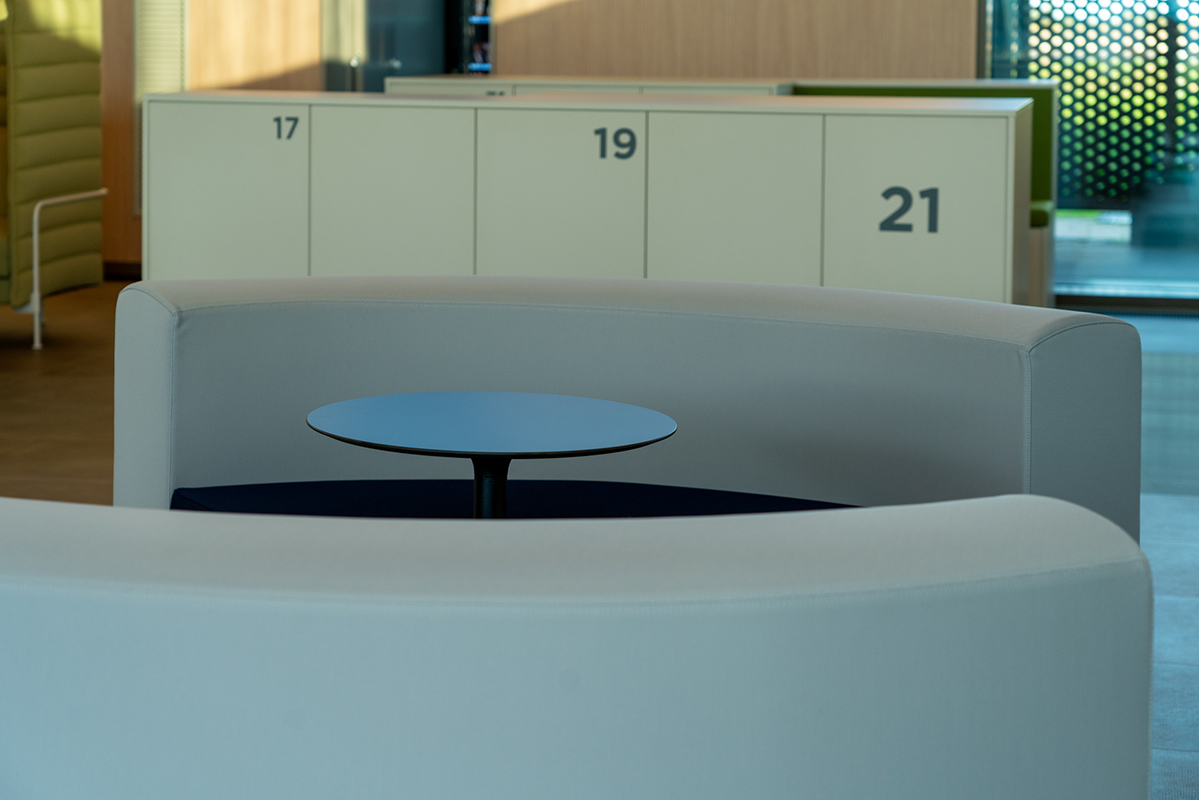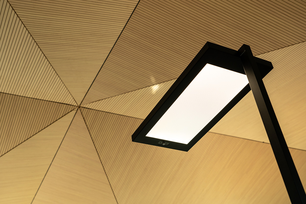Queste soluzioni comprendono lampade da terra a LED con luce biodinamica e sensori di movimento, insieme a pannelli fonoassorbenti free-standing progettati per una configurazione libera che garantisce la massima flessibilità e un facile adattamento a nuove esigenze operative.