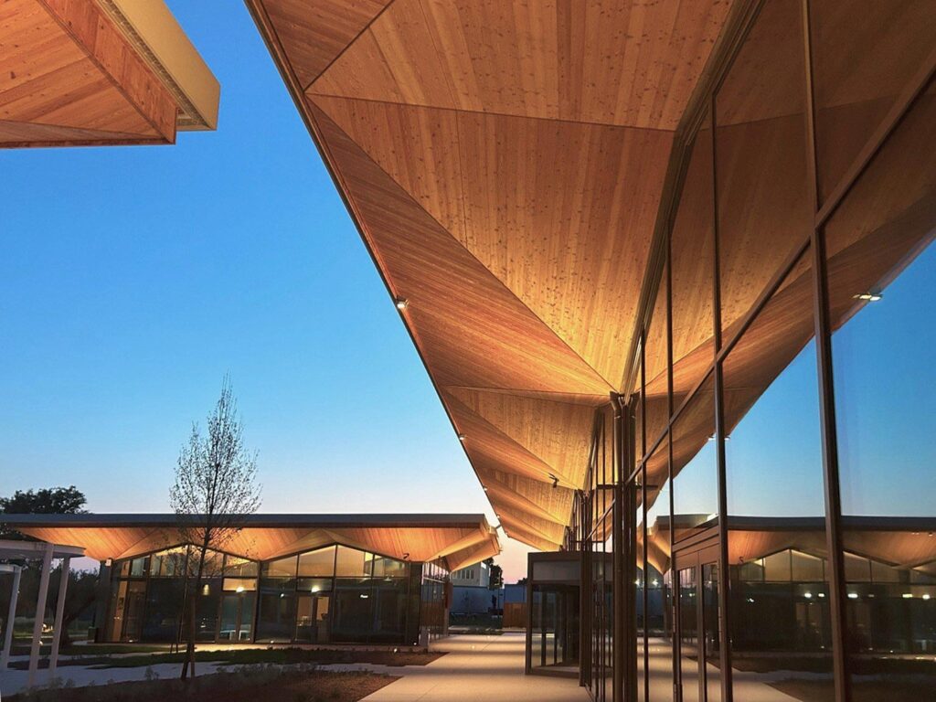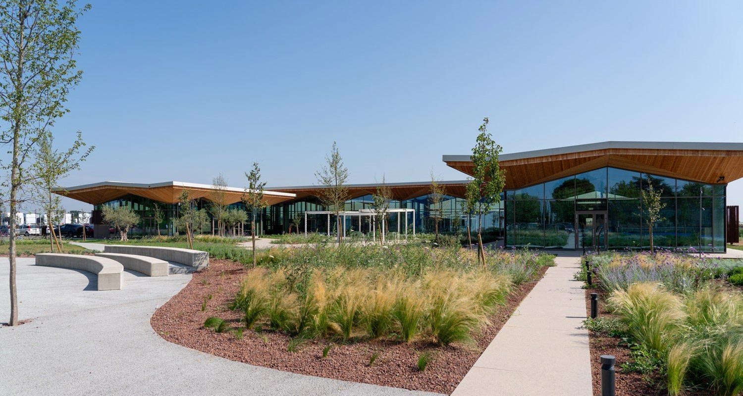 Un campus formato da quattro edifici indipendenti sviluppati su un unico piano, immersi in un vasto giardino progettato per essere uno spazio condiviso a supporto delle attività aziendali.