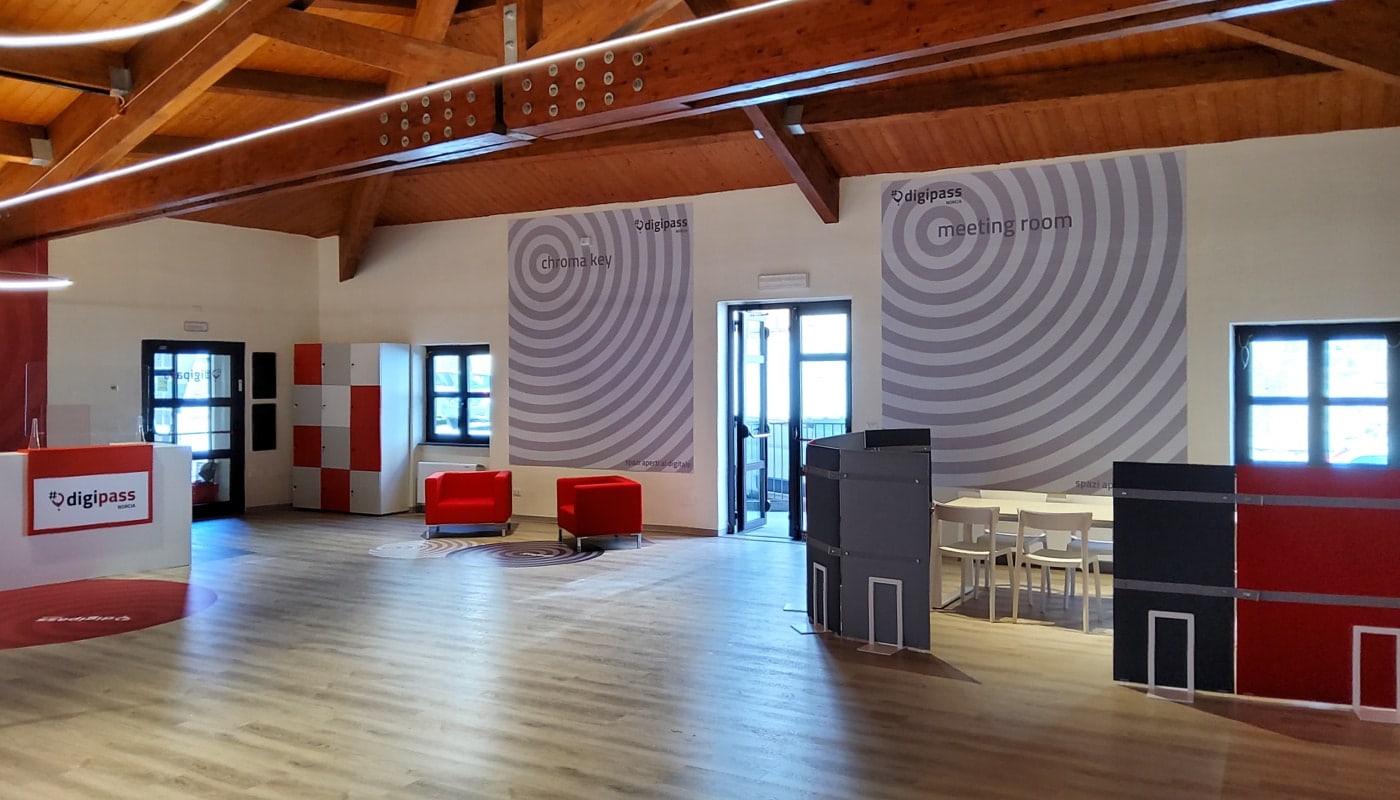 Lo studio di architettura ha progettato il nuovo Digipass immaginando arredi realizzati su misura, progettati in linea con il mood e i colori della rete Digipass.