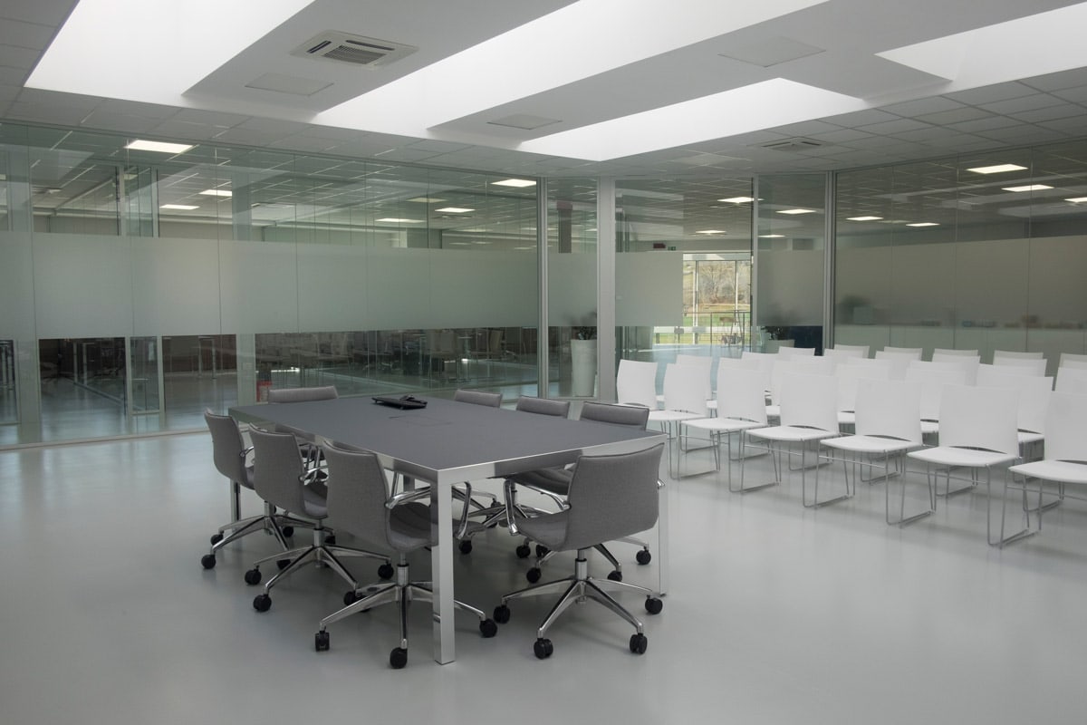 Il progetto di arredo include sgabelli, parete vetrata monolitica Slate, sedute Aqua e AR10R.