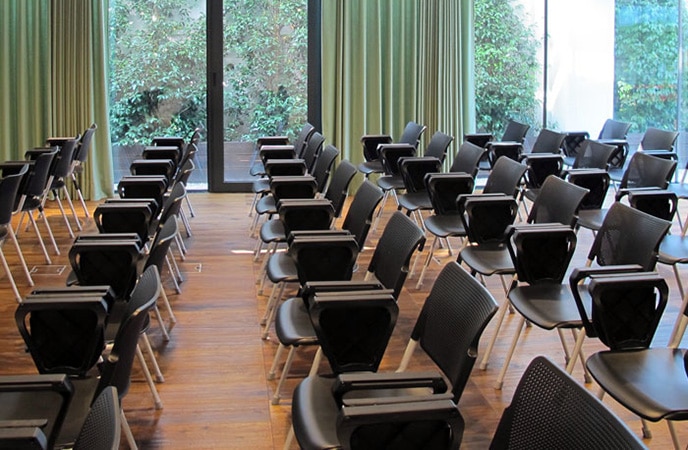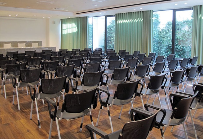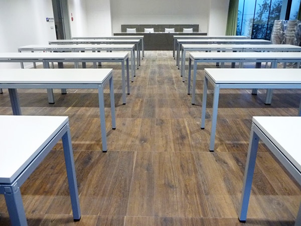 Iniziamo a progettarePer la sede centrale di Scavolini abbiamo arredo la sala meeting e training che si trova all’interno dello showroom aziendale. La sala deve poter essere configurata sia a platea con 70 sedute, che con tavoli per i corsi garantendo 14 postazioni.