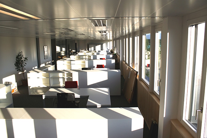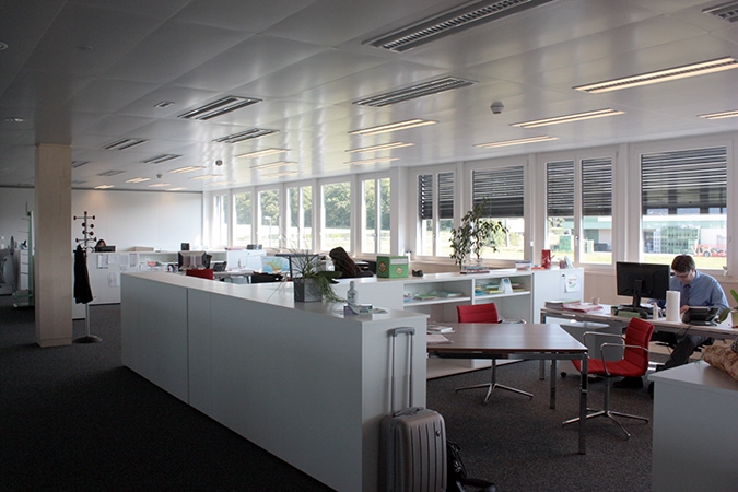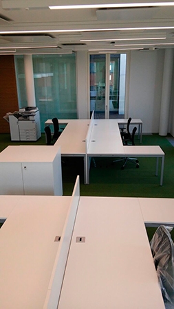 Fanno parte del progetto di arredo anche bench Big Box, paretine open space Diagramma screen, sedute operative Aqua, tavoli Status.
