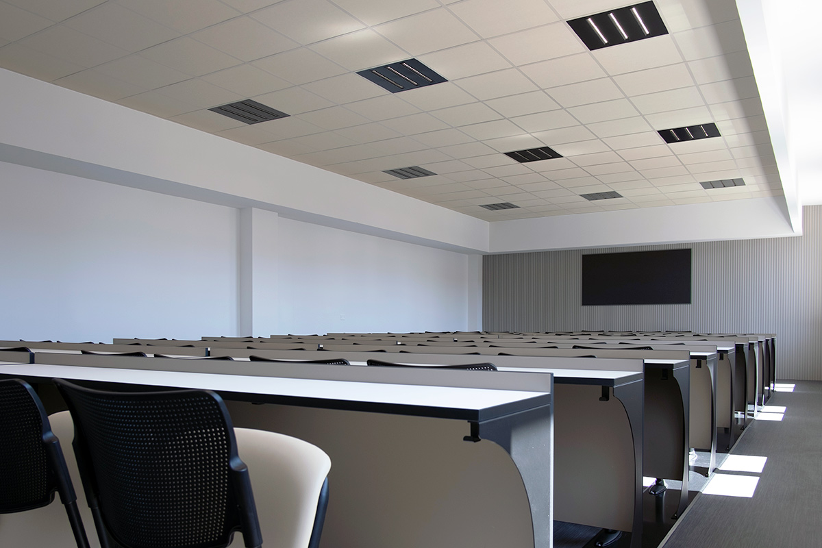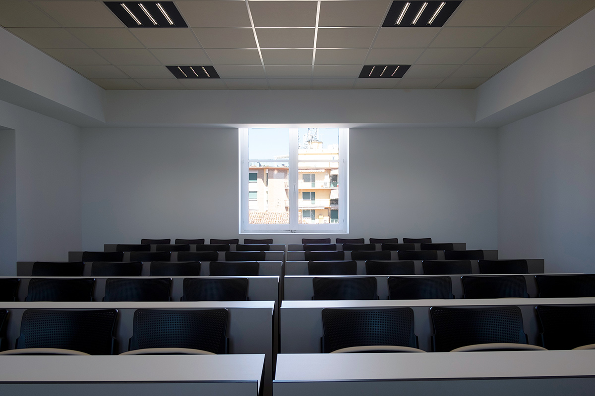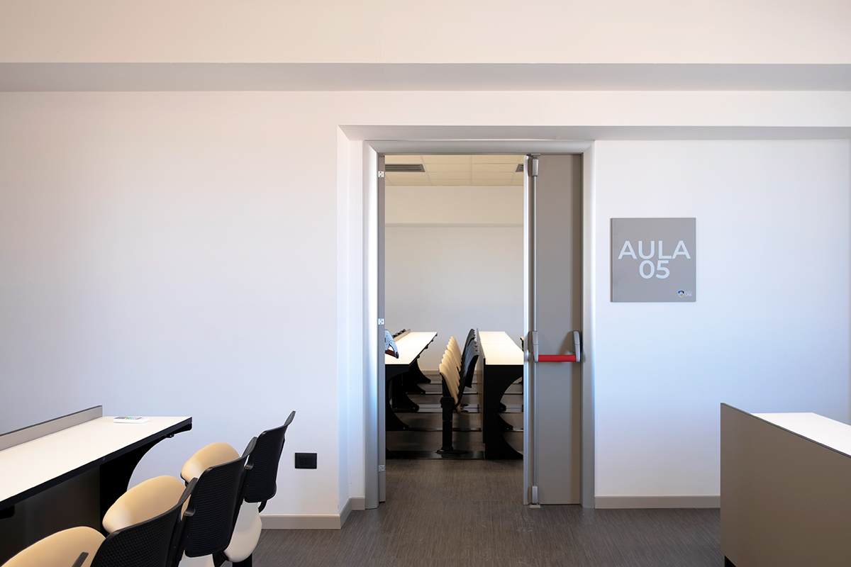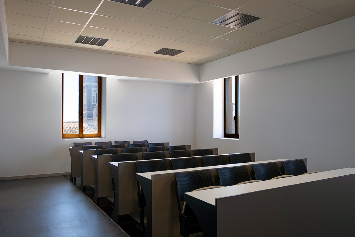 L’intervento ha interessato un’area di 1000 mq, distribuita tra il secondo e il terzo piano dell’edificio, pronto ad accogliere circa 400 matricole in ambienti progettati per l’apprendimento e la condivisione.