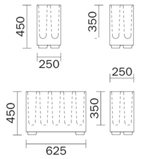 Realizzato in polietilene, si accosta in senso orizzontale e si impila come un gioco ad incastro.