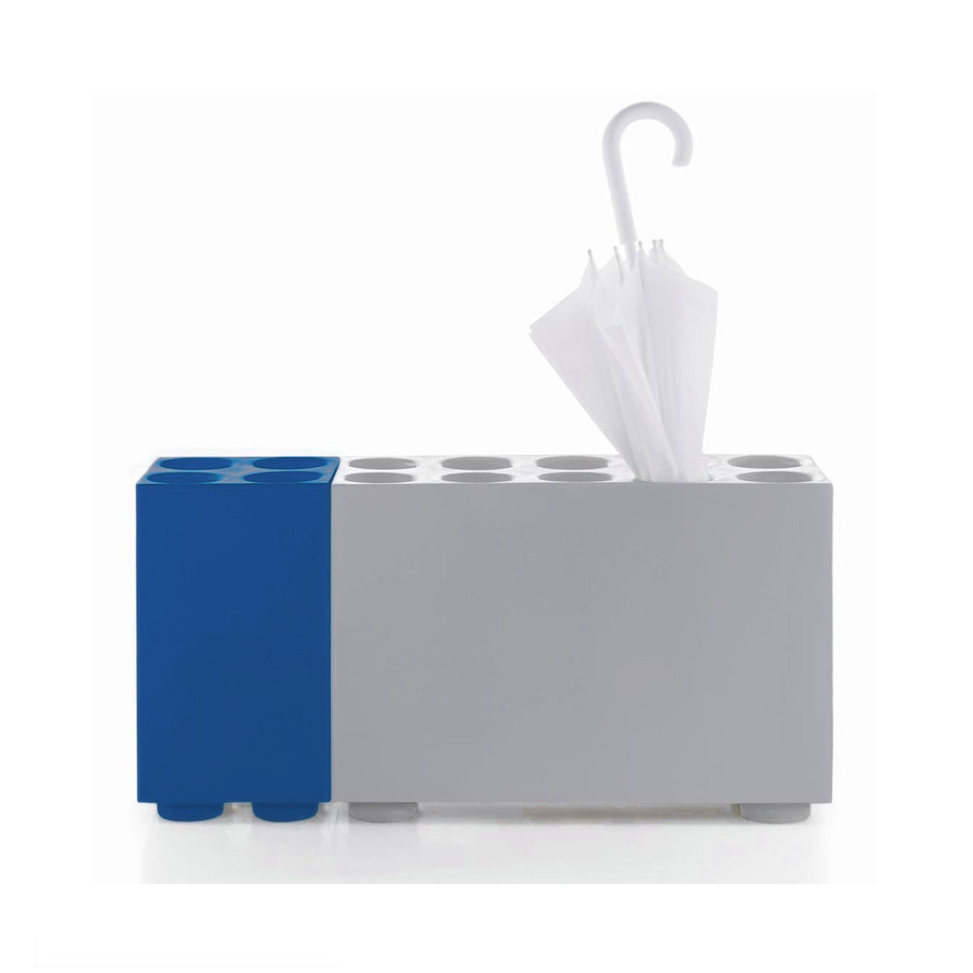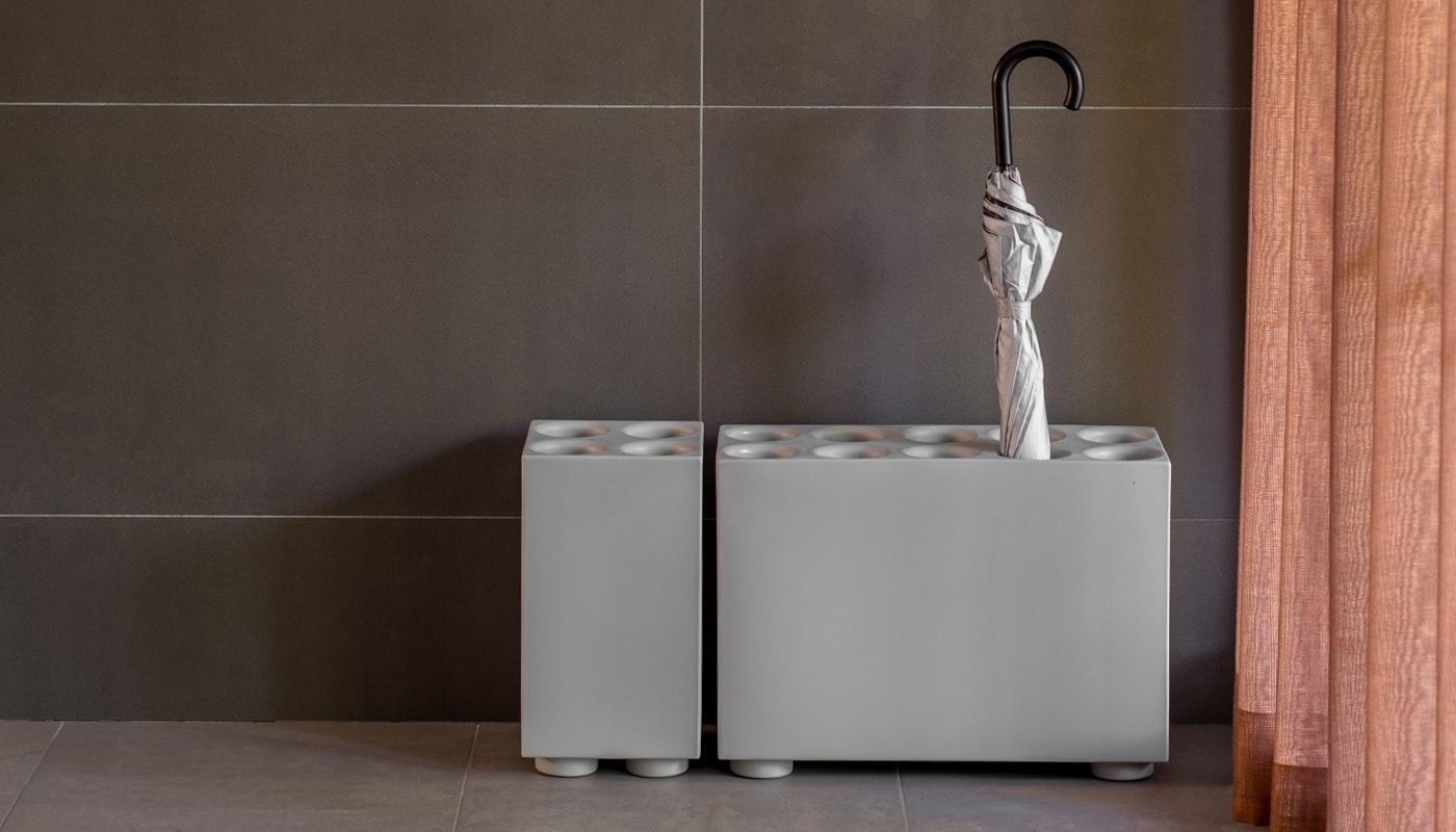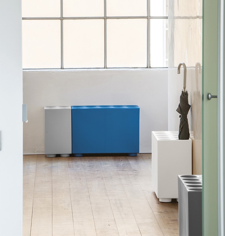 Giocoso ma funzionale, Brik portaombrelli di Pedrali si presenta con i suoi colori vivaci in due versioni: con 4 fori che possono contenere 8 ombrelli o 10 fori per contenerne fino a 20.