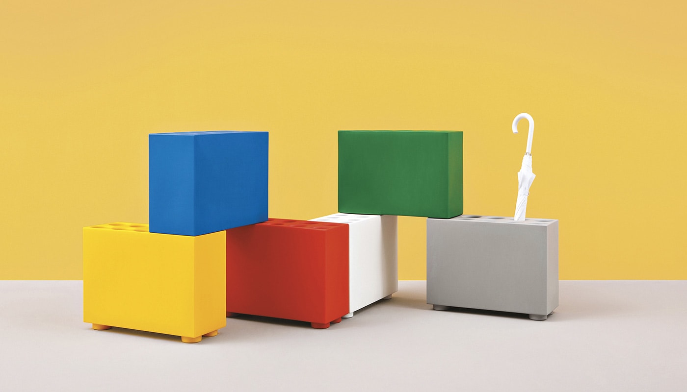 Brik portaombrelli è un arredo colorato e divertente disegnato da Pio e Tito Toso per Pedrali.