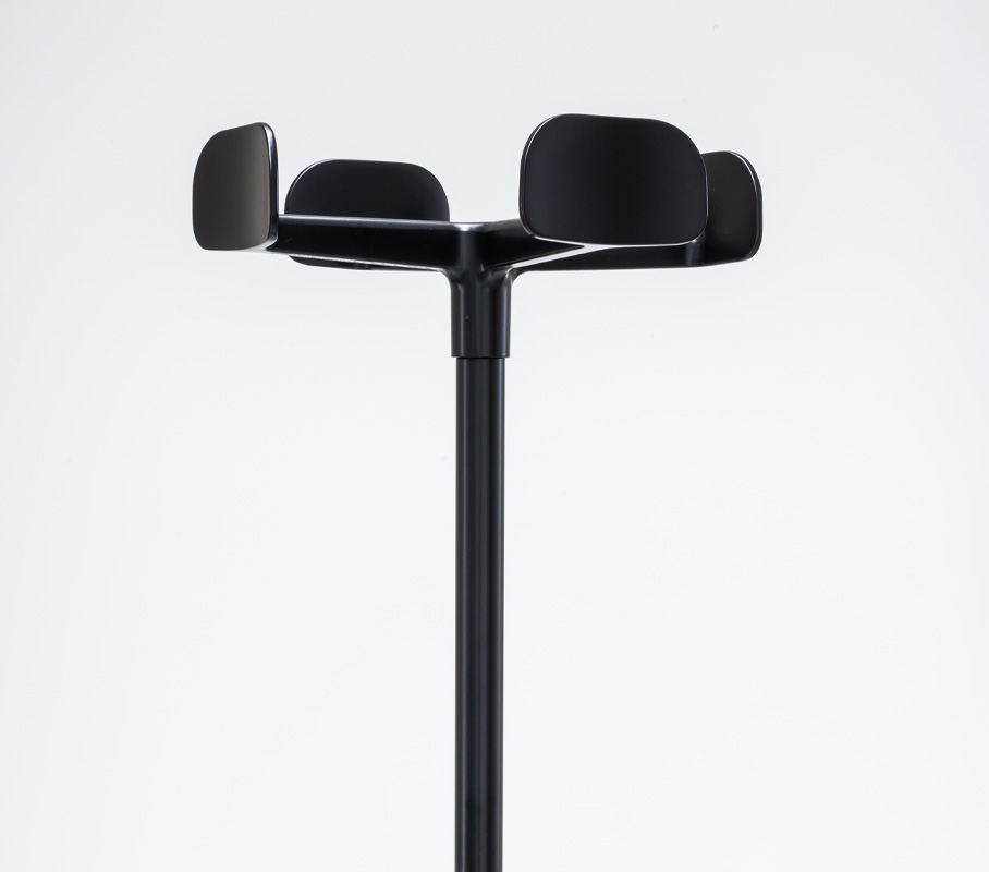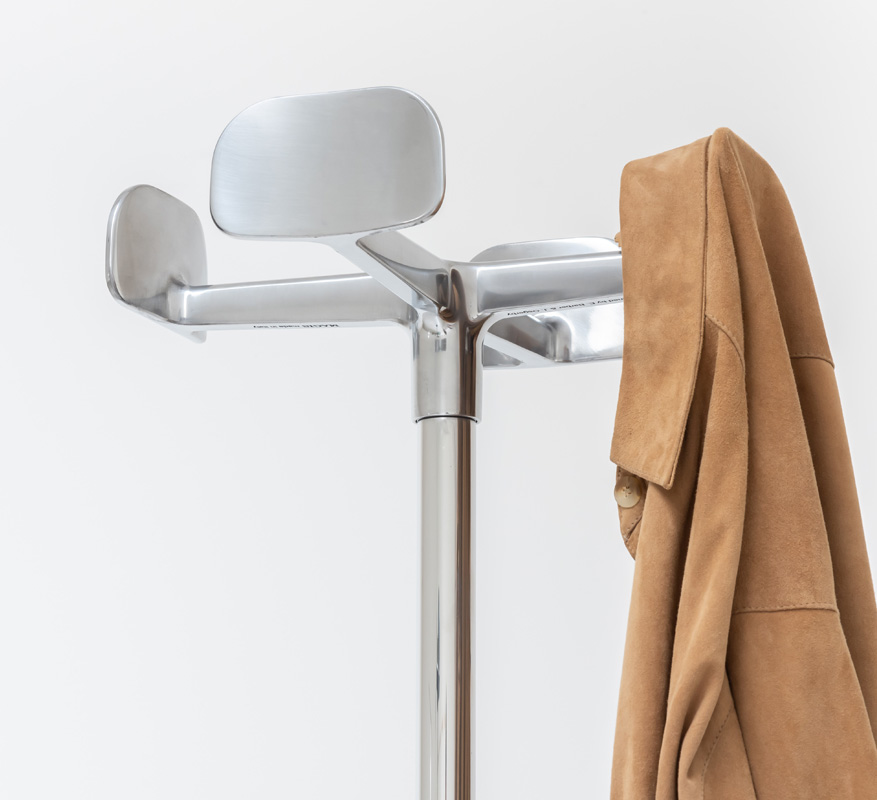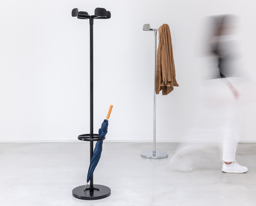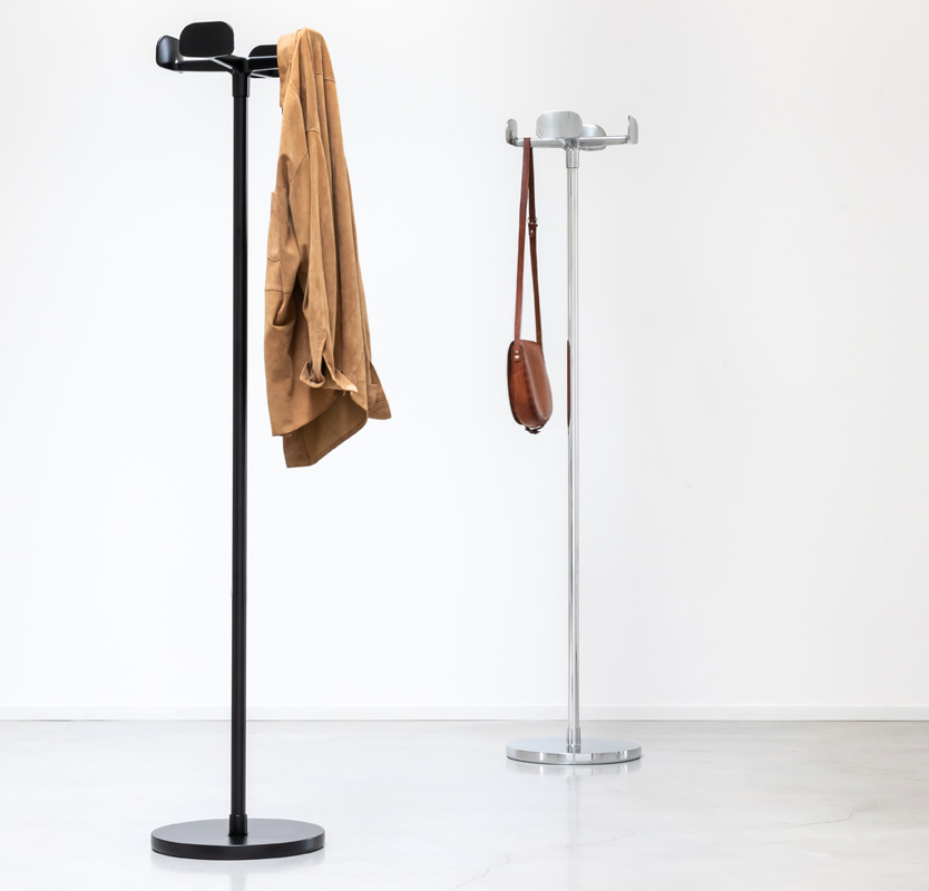 Il risultato è un portabiti di design che rimane impeccabile sia “vestito” di cappotti sia lasciato libero, come elemento d’arredo autonomo.
