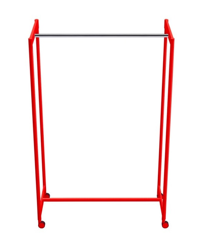 La struttura dell’appendiabiti da terra Meeting di Rexite combina giunti in fusione di alluminio con barre in acciaio verniciato epoxy, disponibili in diversi colori, mentre la barra superiore in acciaio cromato è un dettaglio che garantisce la massima resistenza nel tempo.