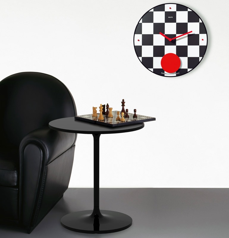 Creato dal designer milanese Raul Barbieri per Rexite, Appuntamento Scaccomatto è un orologio a pendolo dal design sfrontato e pop.