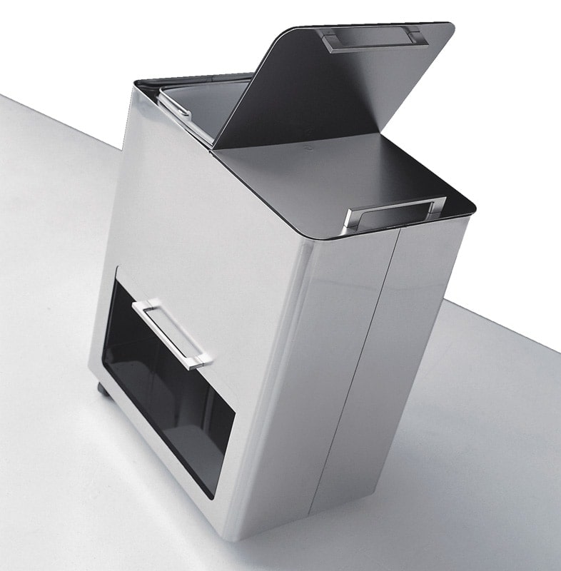 Per favorire nell’uso quotidiano la raccolta differenziata di umido, secco, plastica o lattine, Graepel propone Differenziata e Differenziata New, pattumiere in acciaio inox dall’estetica tecnica e raffinata, collocabili in qualunque ambiente.