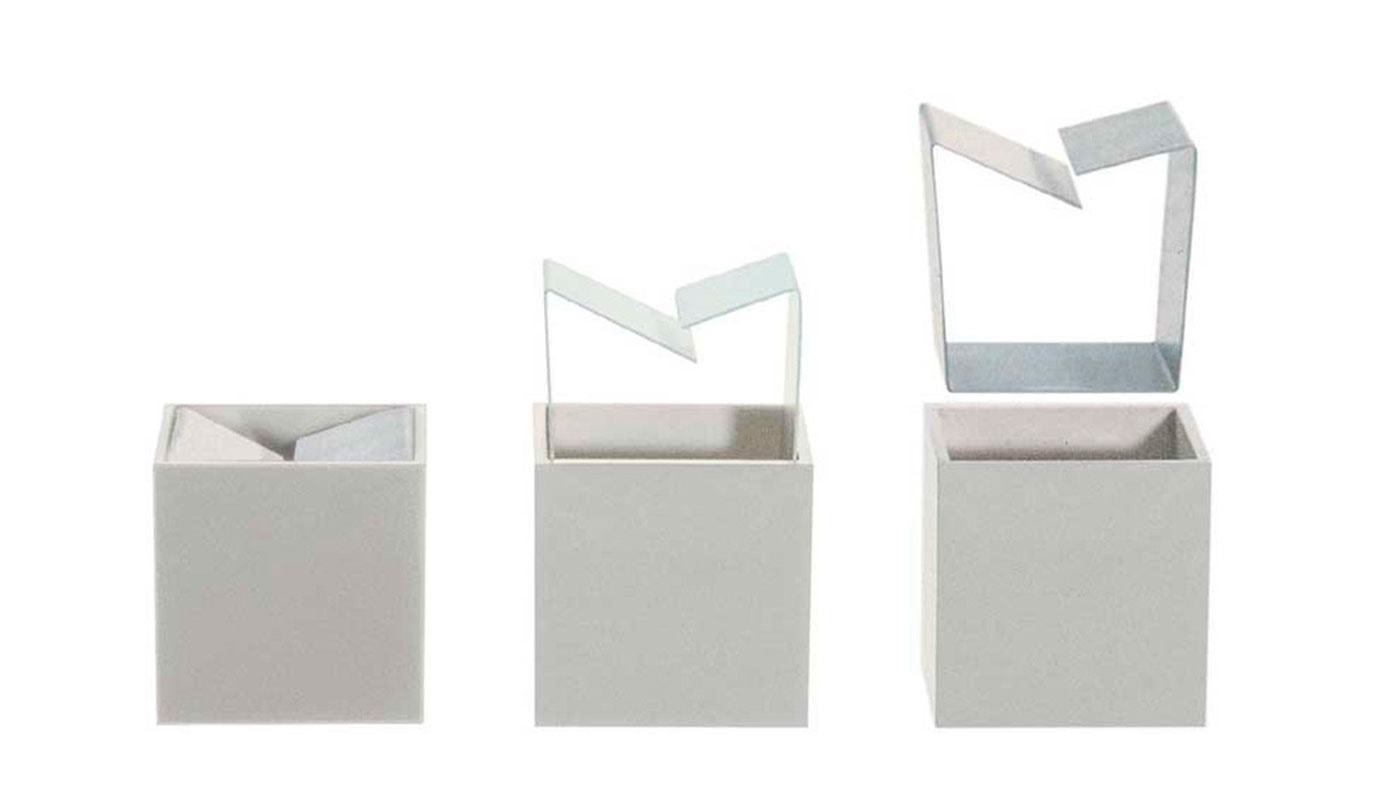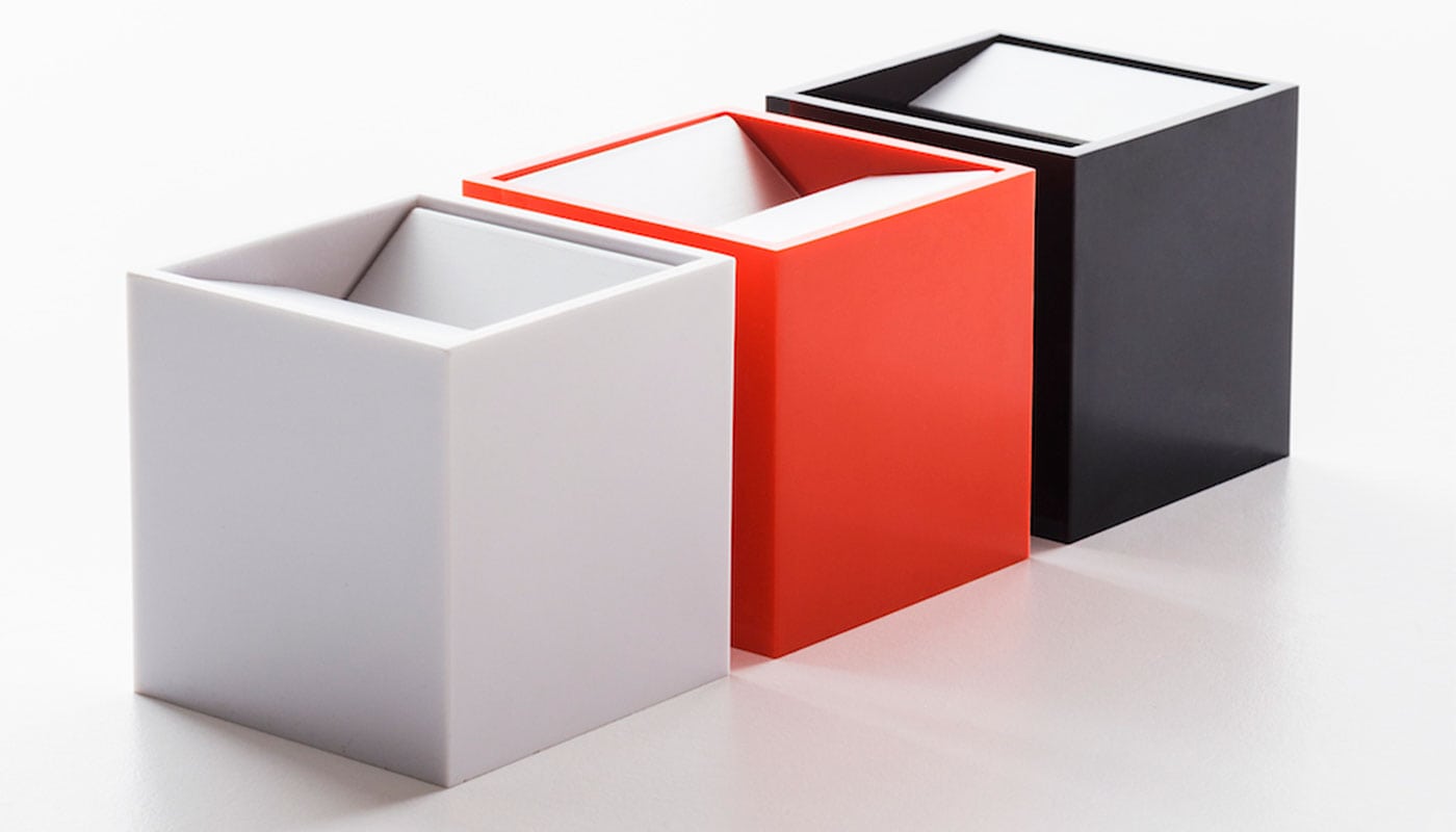 Nel 1957, con Cubo, Bruno Munari reinventa un oggetto che siamo abituati a immaginare aperto trasformandolo in un oggetto chiuso, elegante e multifunzionale. Cubo contiene, nasconde, evita il versamento accidentale durante il trasporto o nelle cadute.