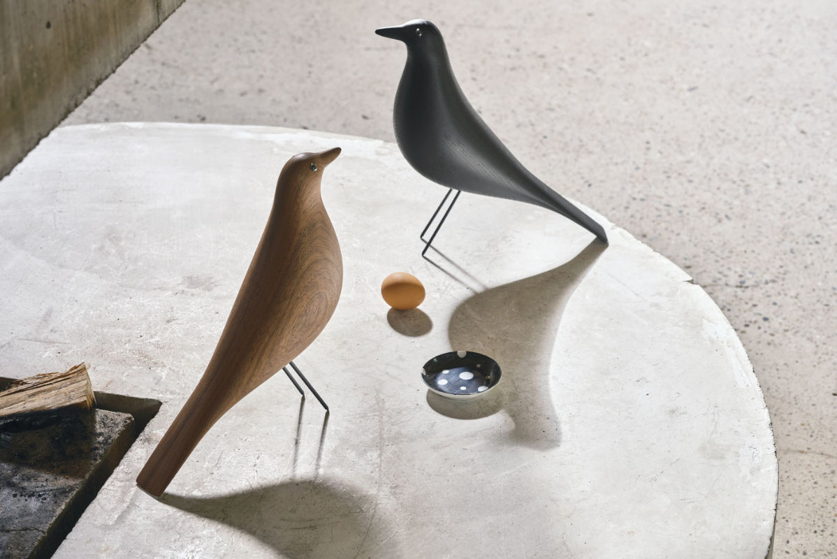 La statuetta, entrata con quelle foto nella storia del design, è stata ribattezzata Eames House Bird, e oggi Vitra la riproduce in legno e acciaio.
