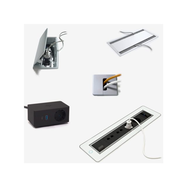 Grazie alla loro praticità, i componenti Della Chiara semplificano l’accesso alla corrente elettrica, alle prese USB e ai cavi di rete, assicurando una postazione operativa ordinata e funzionale.