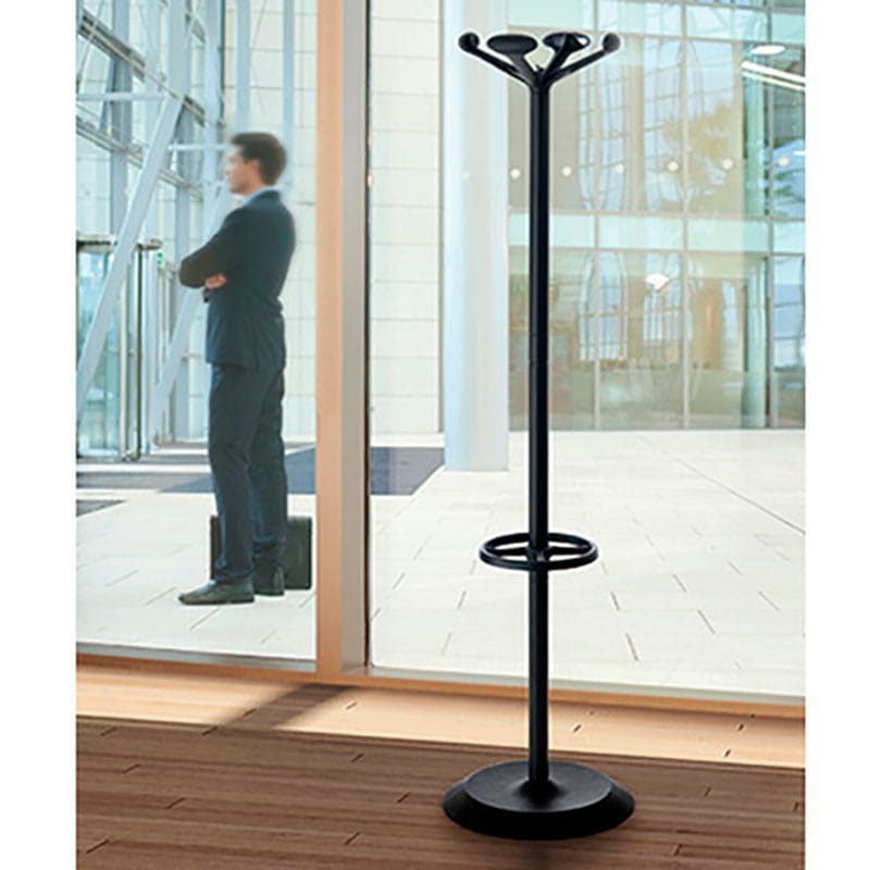 Provvisto di portaombrelli e vaschetta per l’acqua circolari, disponibile in due colori, Eva è in grado di adattarsi a ogni tipo di ambiente ed è particolarmente indicato per i contesti professionali, sia classici che contemporanei.
