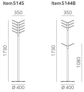 L’appendiabiti Flag è disponibile in due versioni: Flag 5145 con cinque doppi terminali simmetrici tutti posti nella parte superiore e Flag 5144B, in cui i bracci sono quattro, ugualmente doppi e simmetrici ma disposti a due diverse altezze.