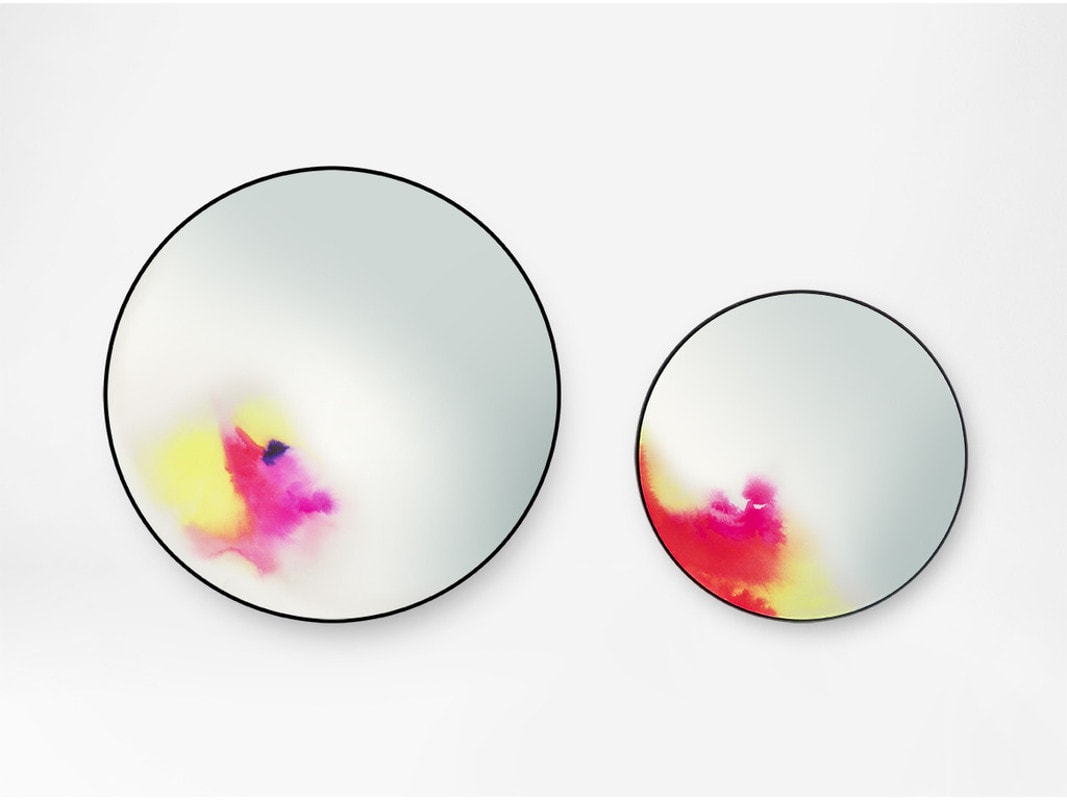 Un esperimento di Constance Guisset sulla pigmentazione dà forma a uno specchio particolare e prezioso, contraddistinto da un motivo colorato imprigionato nel vetro.