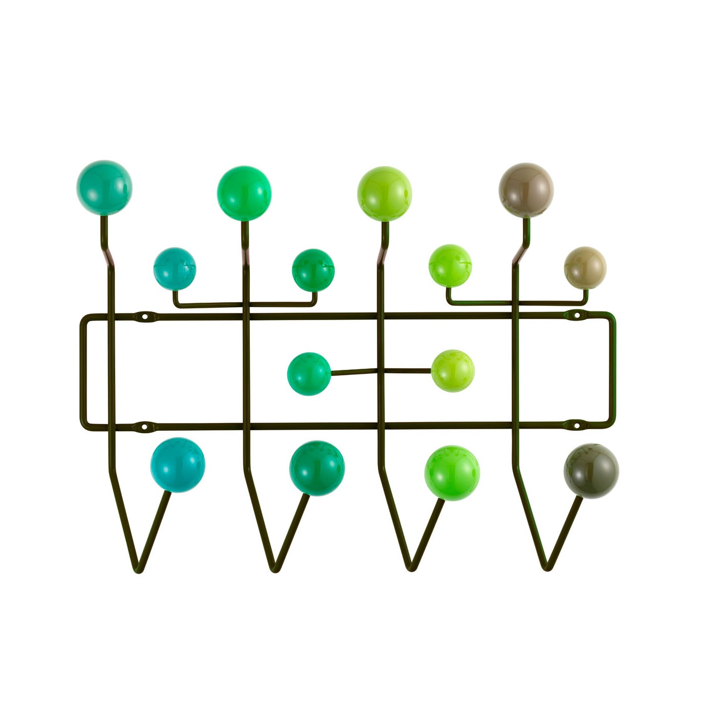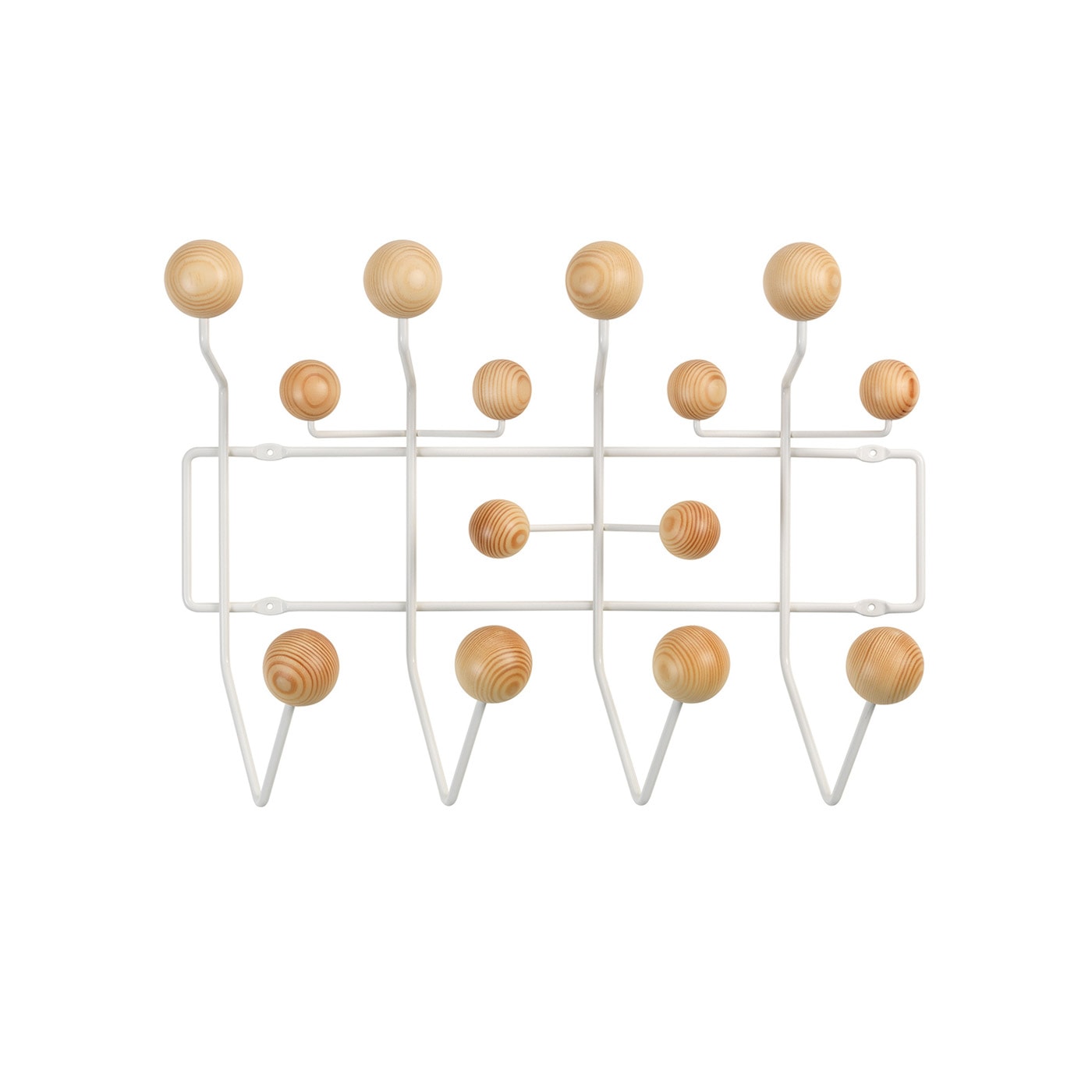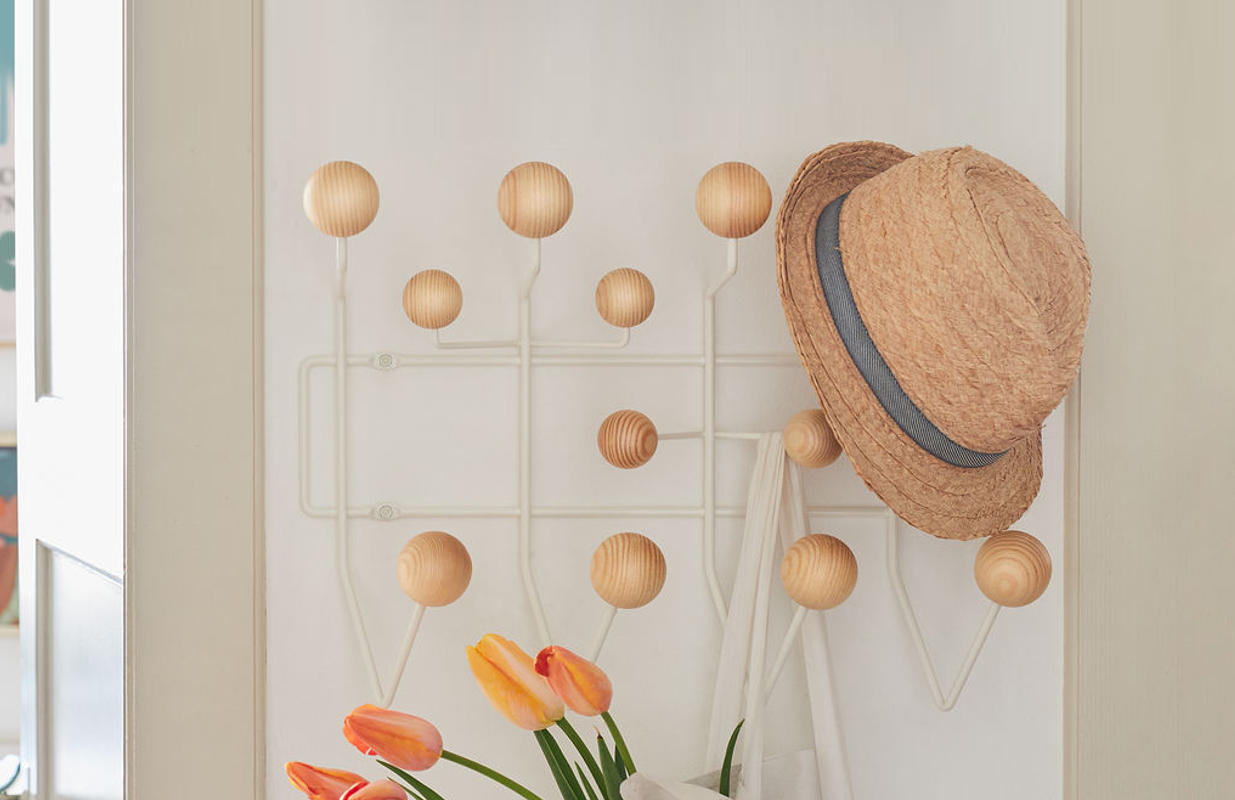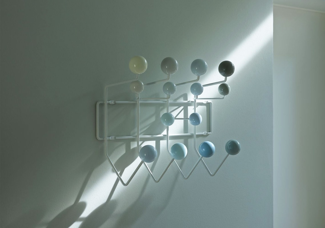 Hang It All appendiabiti con le sue sfere in legno è un arredo incredibile: disegnato per Vitra da Charles e Ray Eames nel 1953 e sempre straordinariamente attuale, sospeso tra il divertissement pop e l’opera d’arte contemporanea.