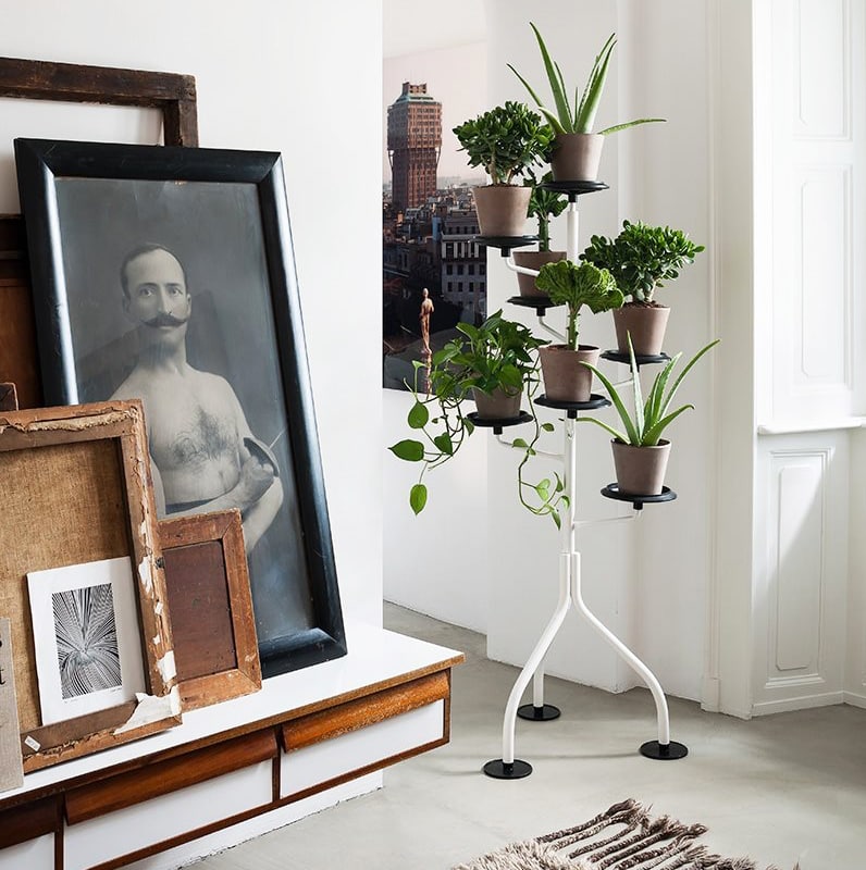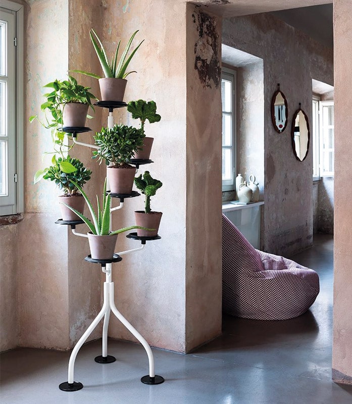 Albero portavasi di Zanotta: la semplicità nel nome e nel concetto, la genialità nel risultato.