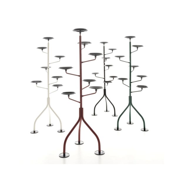 Realizzato in acciaio e dotato di sette piattelli portavasi, Albero è disponibile in diversi colori.