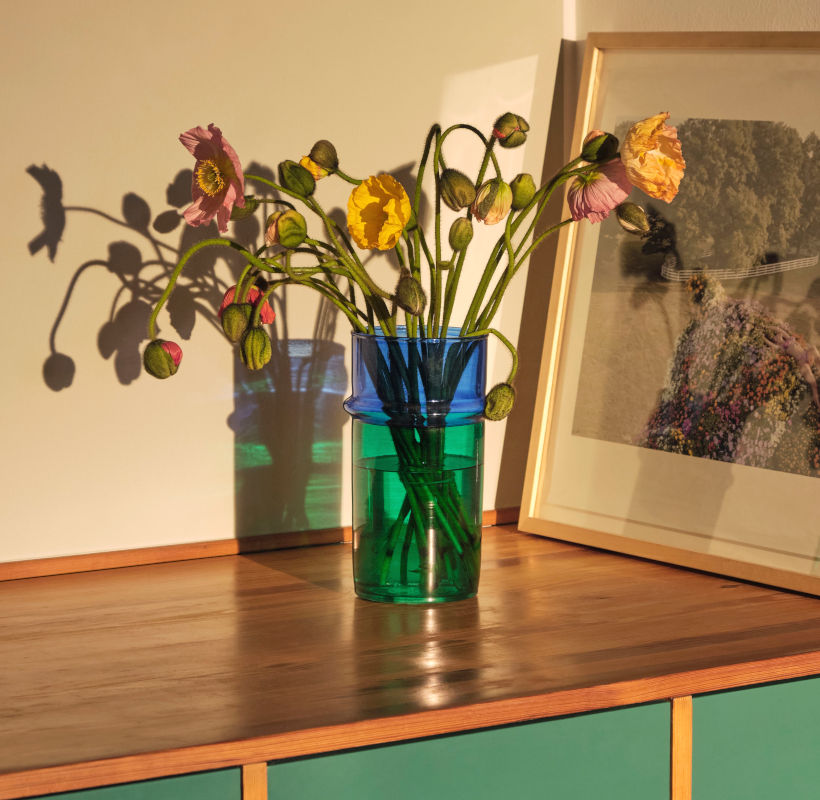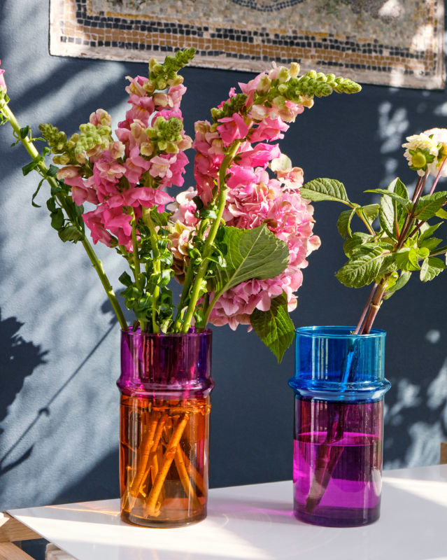 Disponibile in due dimensioni e in una gamma di vivaci combinazioni di colore, il vaso in vetro Moroccan di Hay è in grado di trasformare ogni ambiente con un tocco di freschezza e originalità.