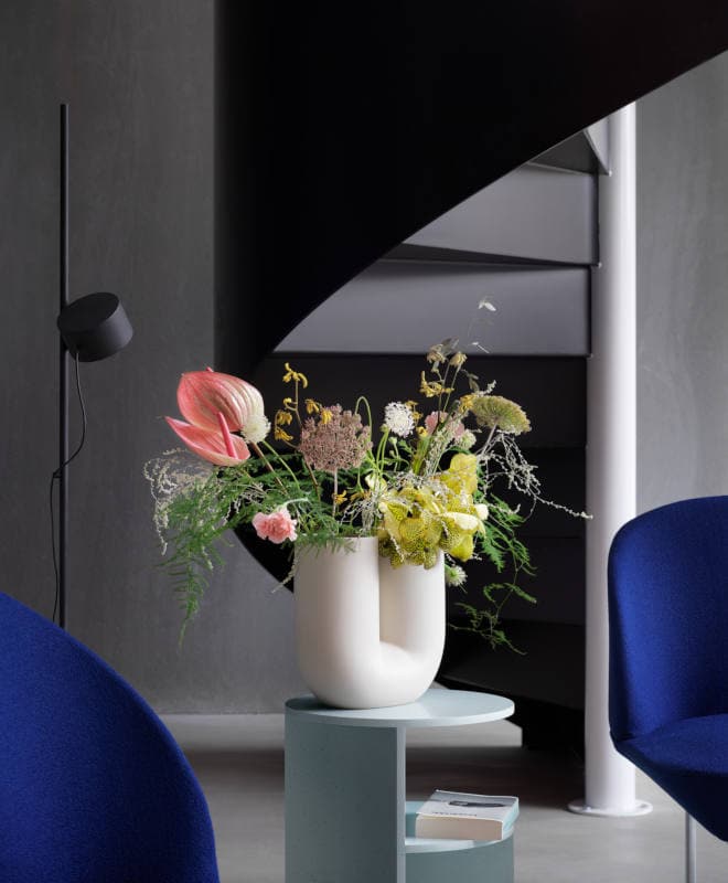 Kink Vase di muuto, ad opera di Earnest Studio, con il suo aspetto giocoso e scultoreo conferisce una forma più contemporanea al classico vaso di fiori, pur mantenendo una tradizione fortemente artigianale nella sua realizzazione.