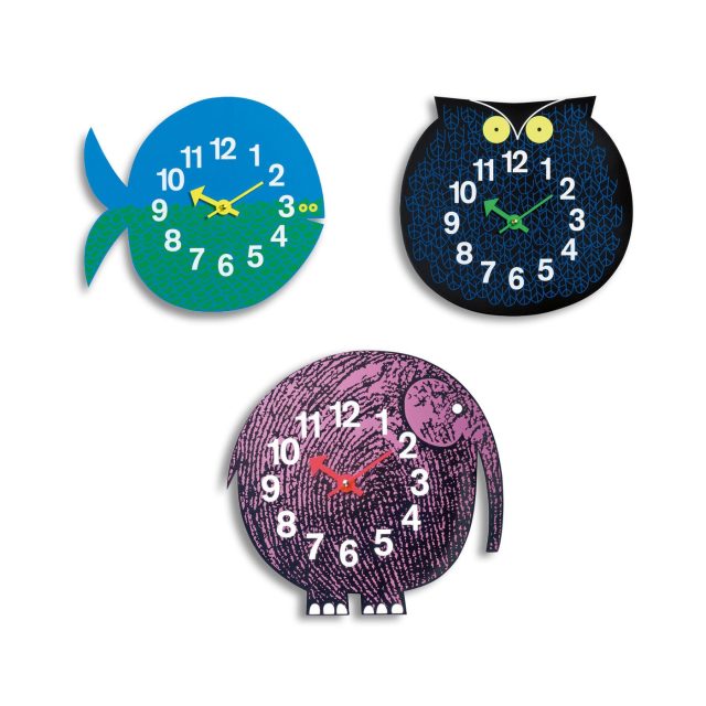Zoo Timers orologi da parete di Vitra, è una collezione composta da tre simpatici personaggi – disegnati nel 1965 da George Nelson, architetto, designer ed in questa occasione anche grafico – che continuano a misurare il tempo in modo giocoso e colorato.