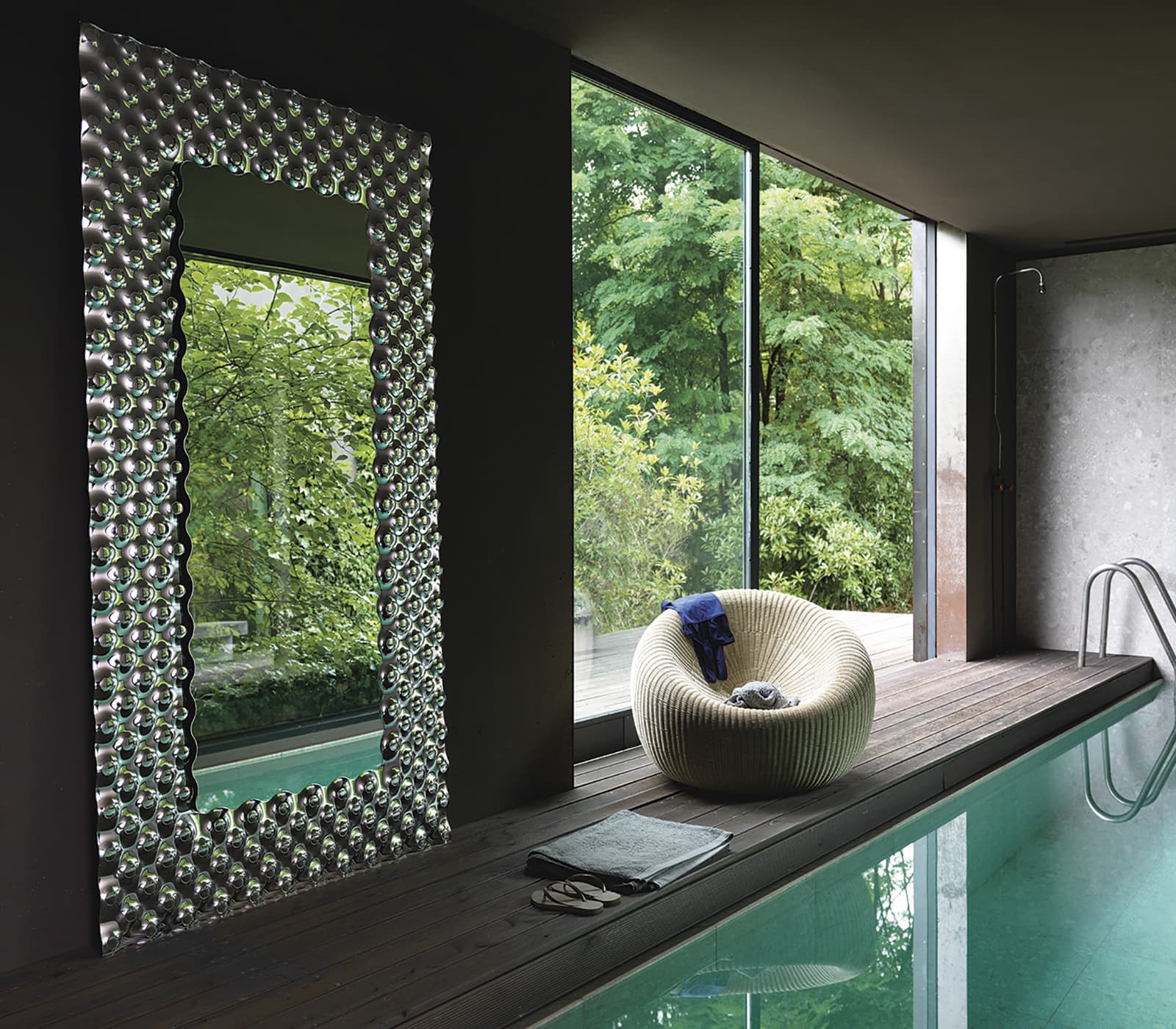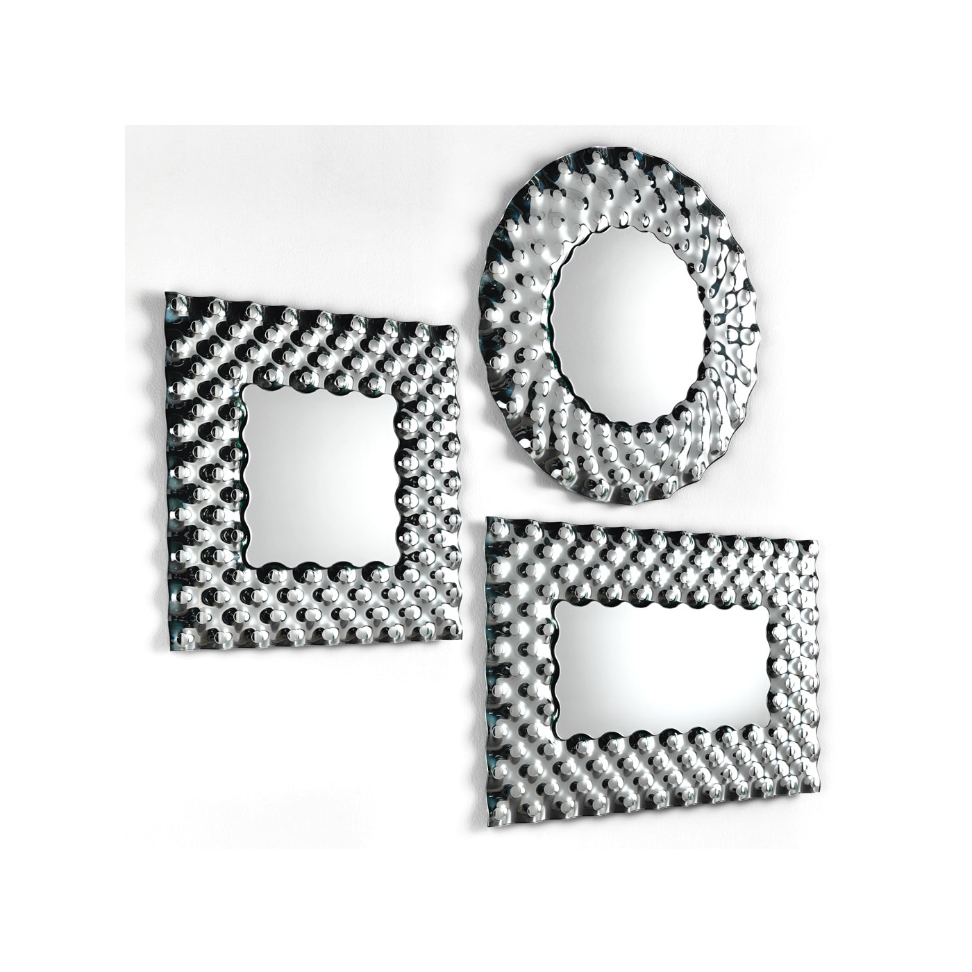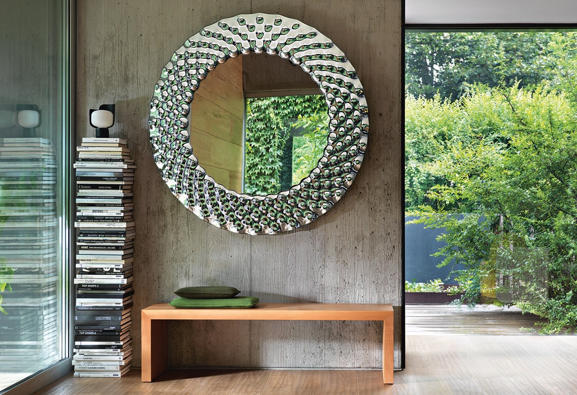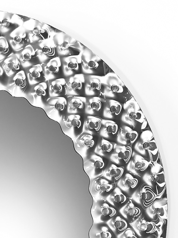 Un arredo disegnato da Marcel Wanders di grande impatto visivo, disponibile nella variante rettangolare, rotonda o quadrata, da parete o da terra.
