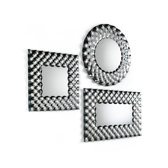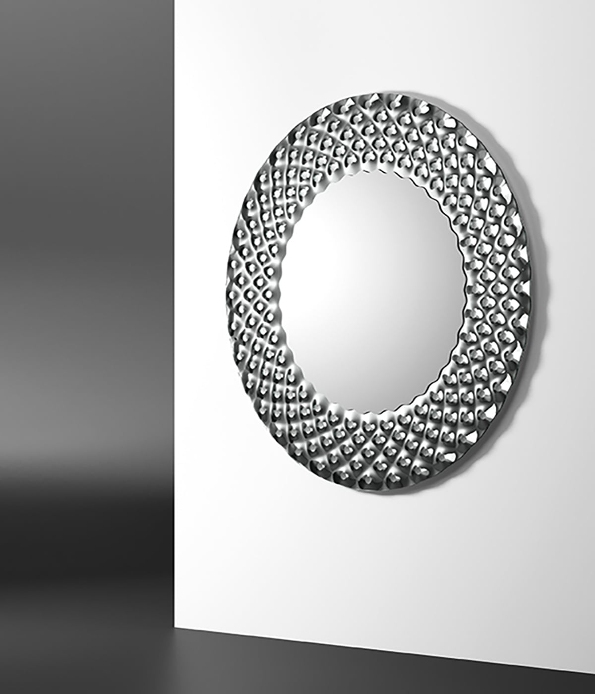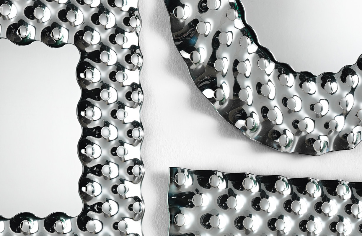 Un arredo disegnato da Marcel Wanders di grande impatto visivo, disponibile nella variante rettangolare, rotonda o quadrata, da parete o da terra.