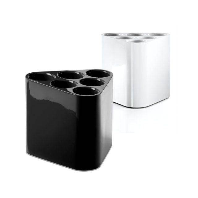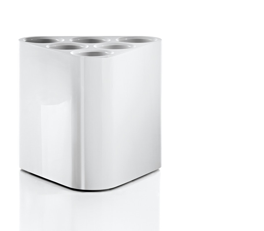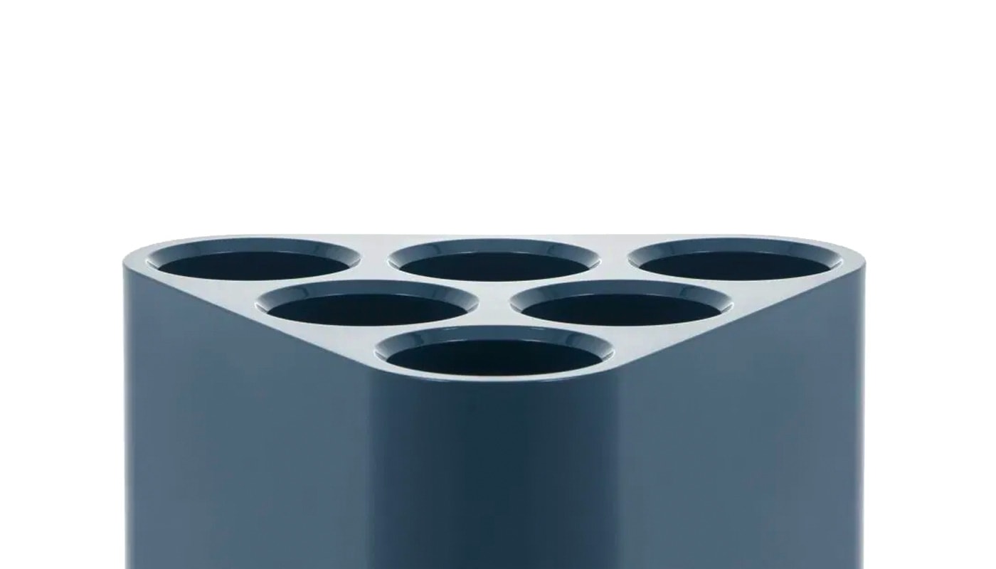 La forma, ispirata ai mattoncini da costruzione e ai triangoli da biliardo, dona al portaombrelli Poppins di Magis un carattere distintivo e allo stesso tempo funzionale: la struttura triangolare permette un perfetto inserimento negli angoli, ottimizzando lo spazio con ingegno.