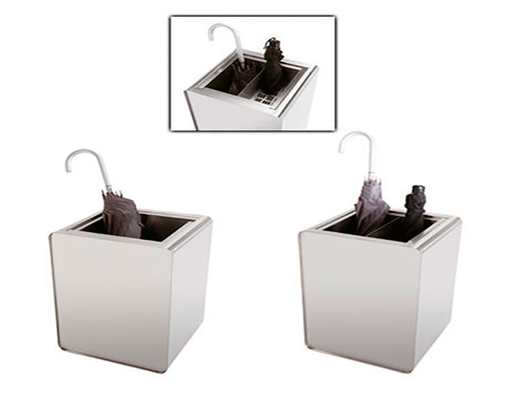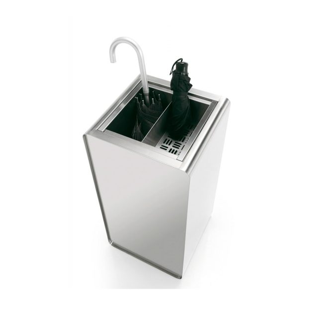 All’interno del portaombrelli, una bacinella raccogligocce estraibile in elastomero facilita la pulizia e al tempo stesso attenua l’impatto degli oggetti, contribuendo al comfort d’uso quotidiano.