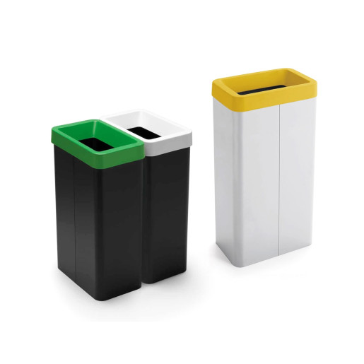 La variante gettacarte è disponibile con coperchio basculante, che nasconde alla vista il contenuto del cestino o con coperchio dotato di foro centrale.