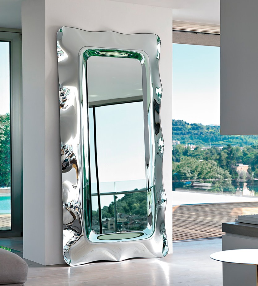 Disegnato da Massimo Iosa Ghini, lo specchio Dorian è disponibile in diverse finiture e può essere appeso in verticale, in orizzontale o appoggiato a terra.
