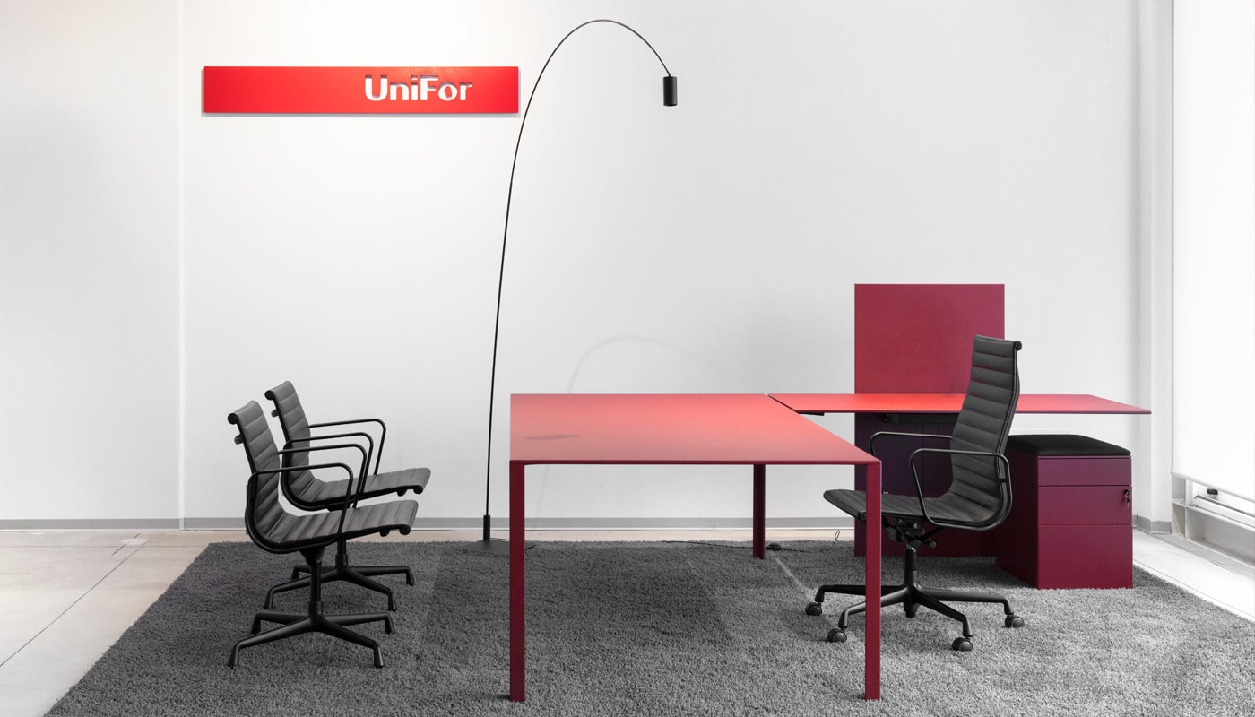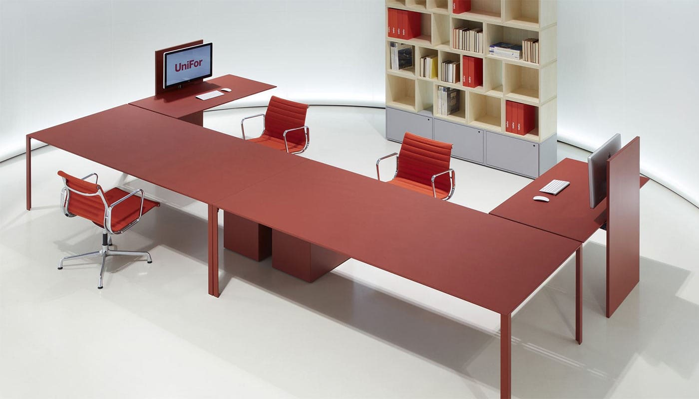 LeesLess Color di Unifor è una linea concepita da Jean Nouvel, un sistema di arredi da lavoro caratterizzati da materiali resistenti e design essenziale che non rinunciano alla gioia del colore.