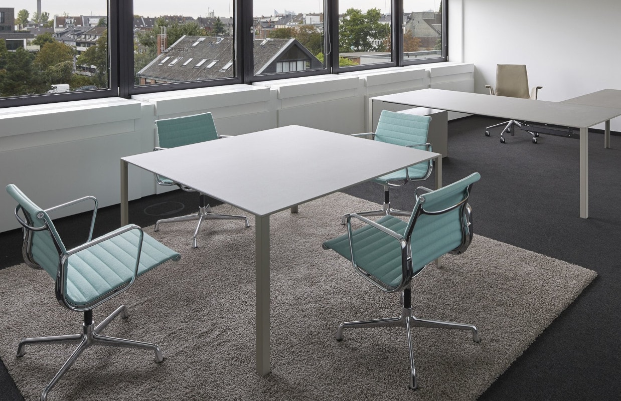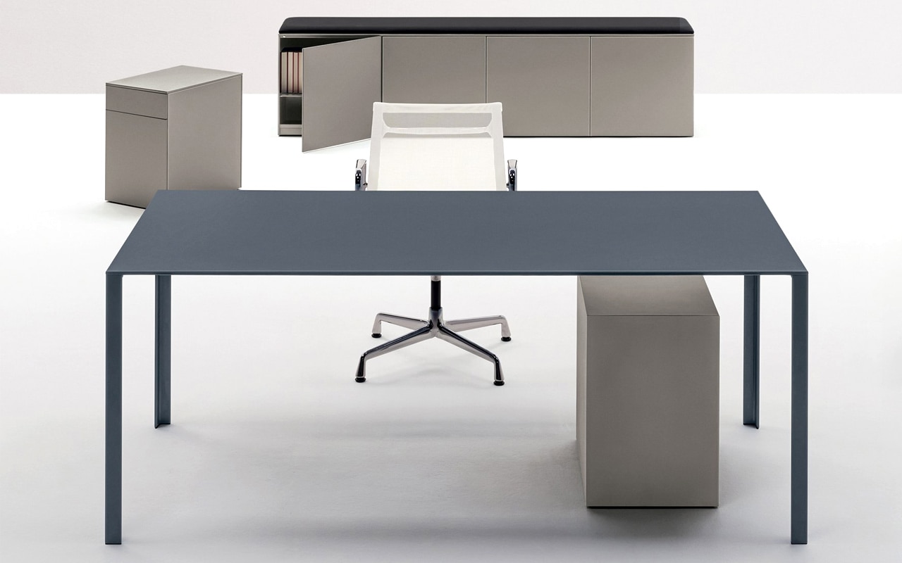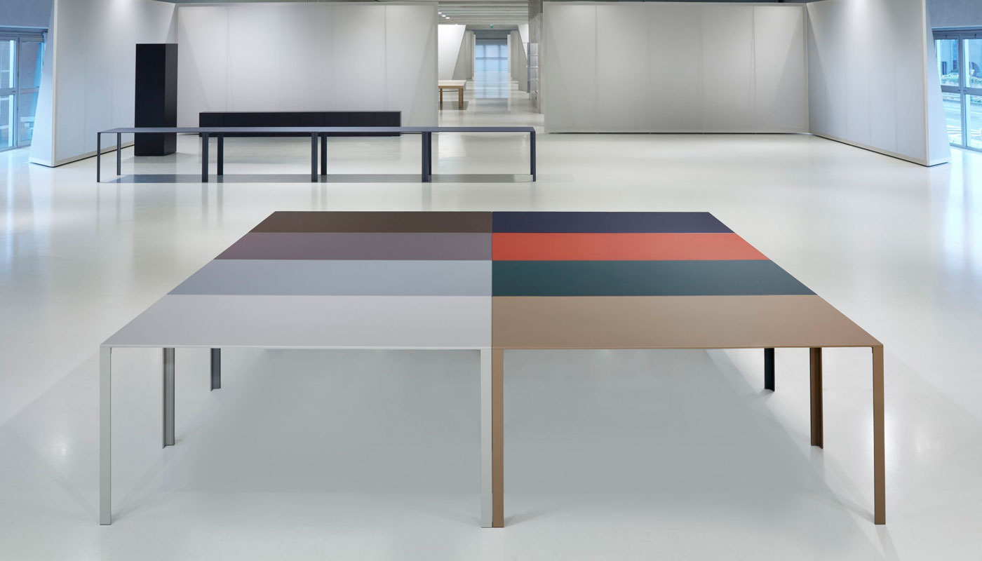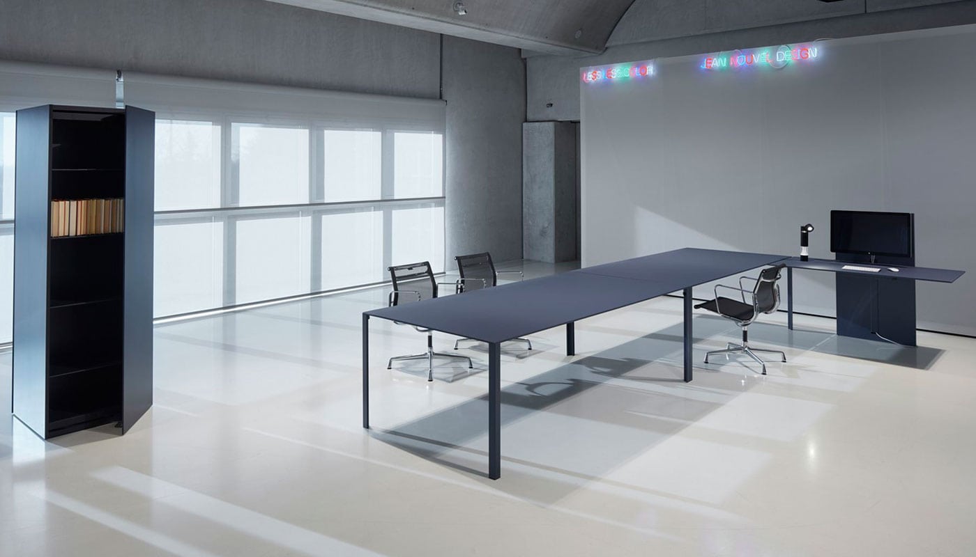 Il tavolo direzionale in alluminio LessLess Color sa essere, nello stesso tempo sobrio e leggero, razionale e informale.
