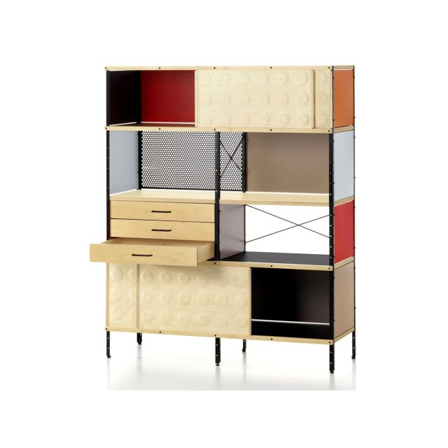 Charles e Ray Eames progettarono i moduli Vitra Eames Storage Unit Bookcase libreria (ESU) e l’Eames Desk Unit (EDU) nel 1949.
