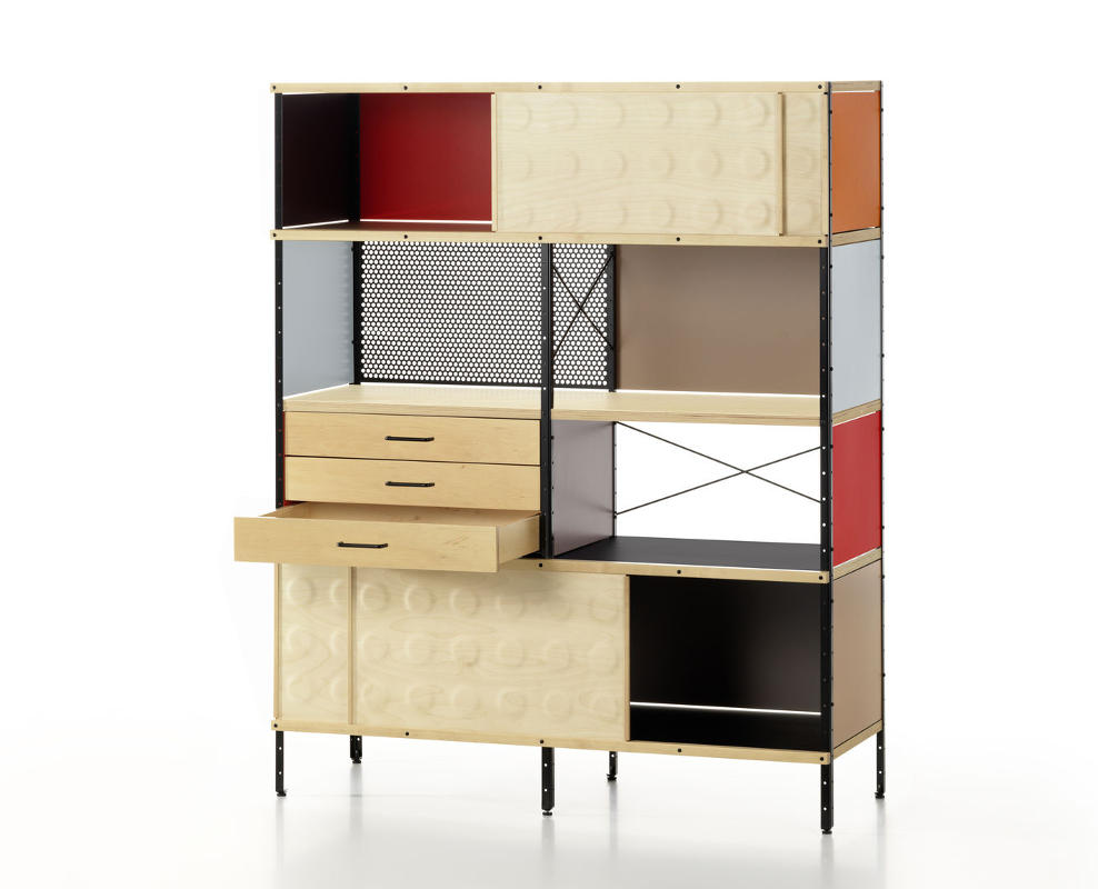 La Eames Storage Unit ESU Bookcase libreria di Charles e Ray Eames colpisce per gli accostamenti di forme, materiali e colori, rivisitati per Vitra dalla designer Hella Jongerius.